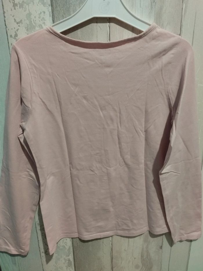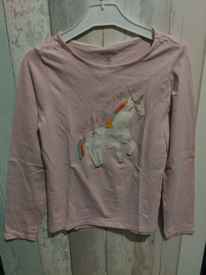 T-shirt manches longues fille, rose avec licorne brodée et écritures. Très bon état. Taille 12 ans. De chez Orchestra #rosered16fille #12arosered16