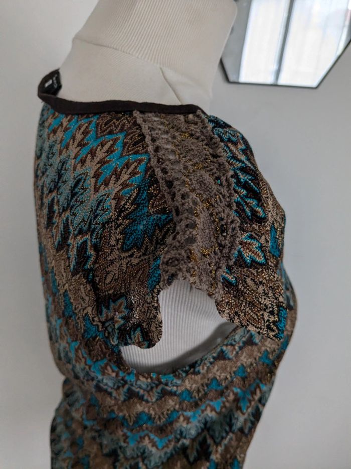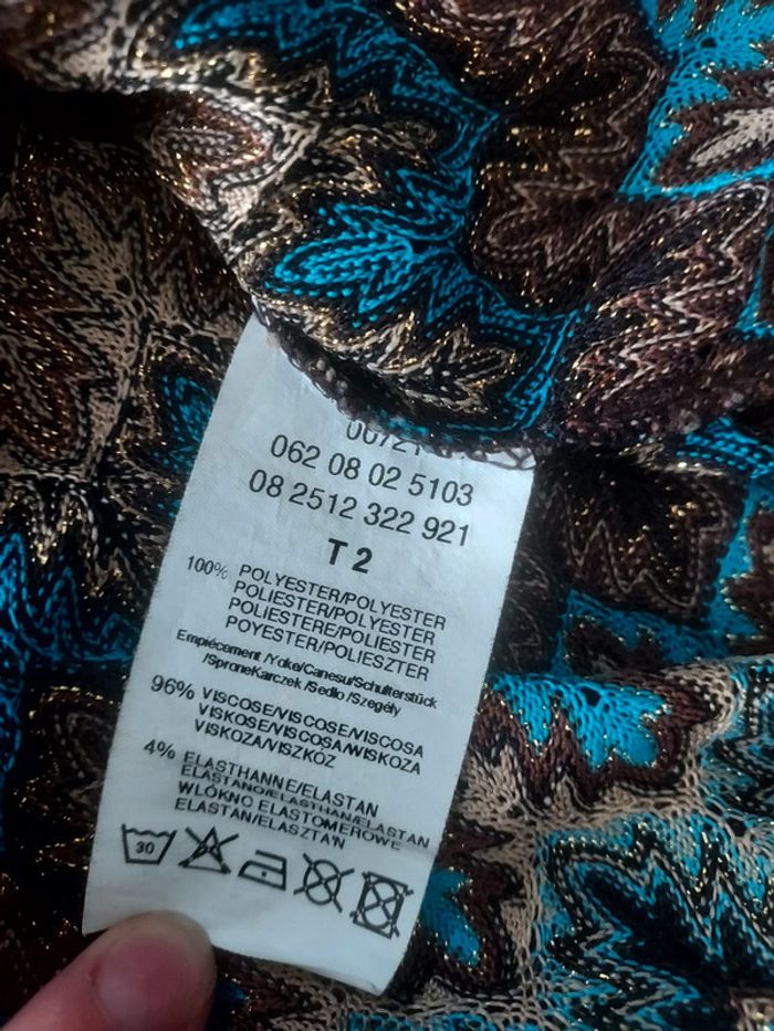 Jolie Haut transparent type cache coeur, légèrement pailleté. ➱ Taille : T2 -> correspond à un 38/M. ➱ État : mis peu de fois / pas de défaut. ➱ Couleur(s) : marron, bleu, touche de doré. ➱ Composition : 100% polyester, 96% viscose, 4% elasthanne. ---------------------- #hauttranstransparent #icietmaintenant #taille38 #femme #camcamlgy_HautT38 #cachecoeur