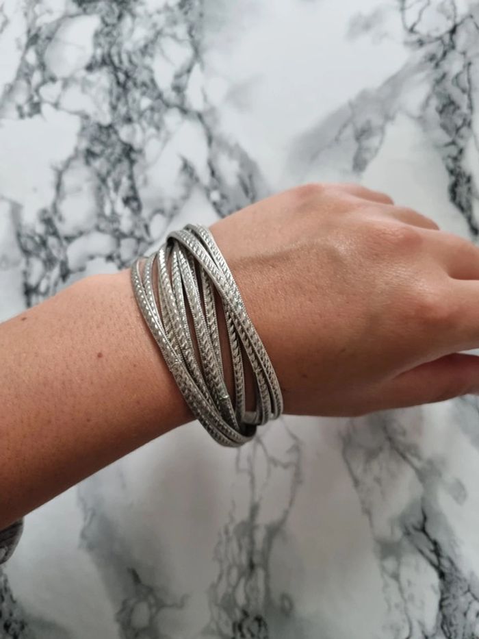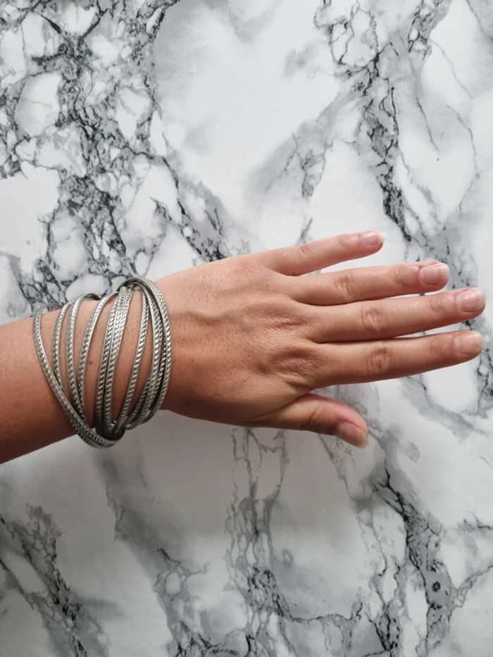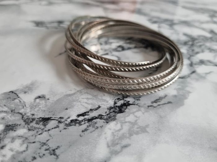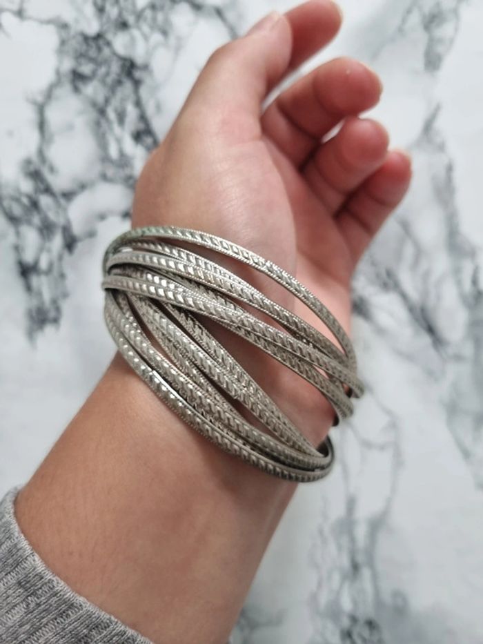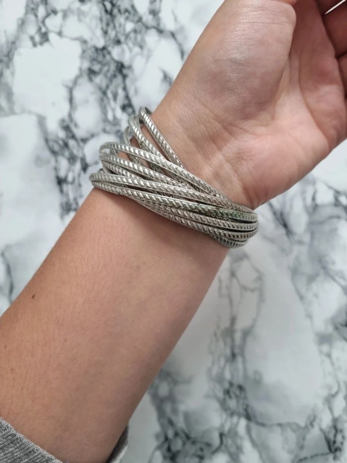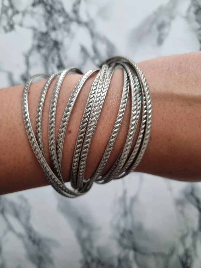 Bracelet argenté vintage en métal 12 bracelets relié En parfait état 7 cm de Circonférence Année '90