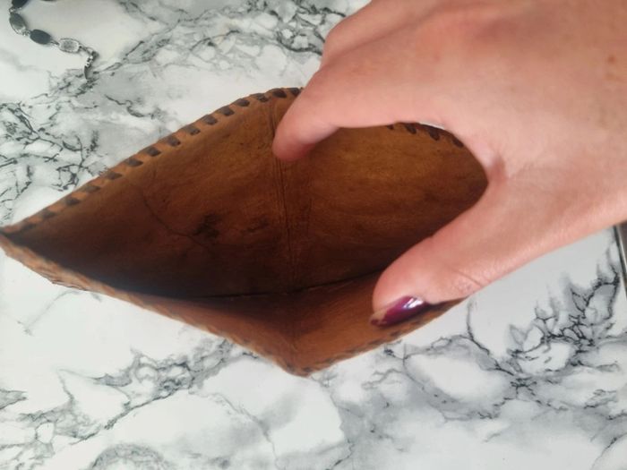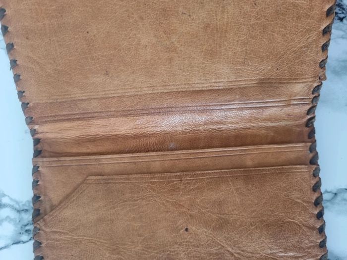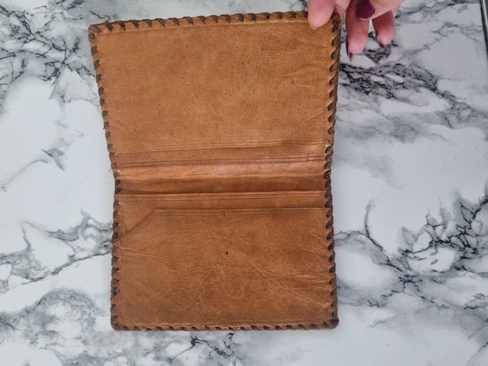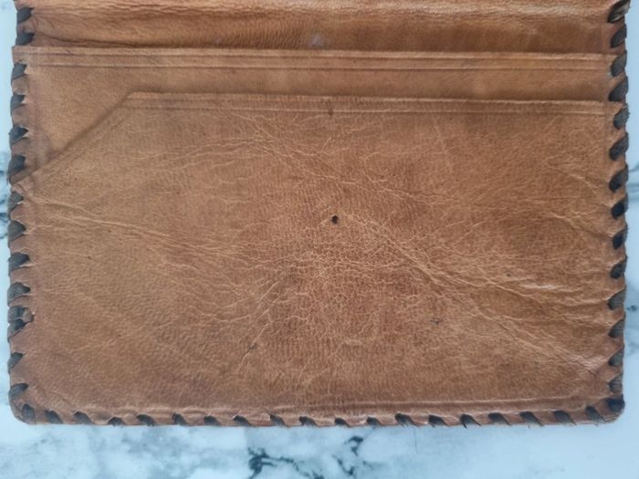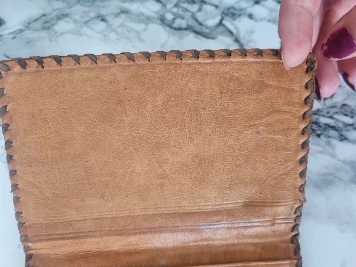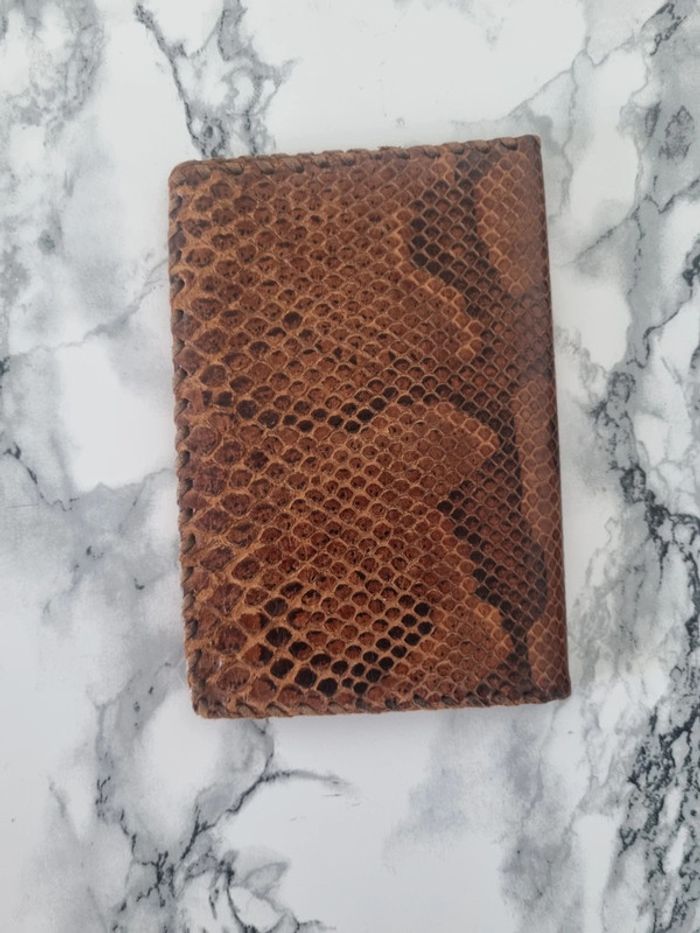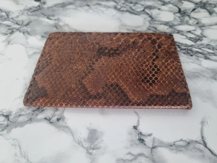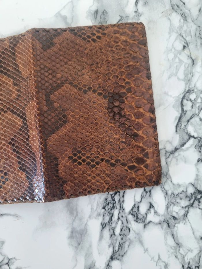 Magnifique porte monnaie en cuir marron Vintage, année '70 Cuir de python ancien En parfait état Effet écaille au touché Laçage sur les bordures en cuir Plusieurs poches de rangement Dimensions : - Largeur fermé : 10 cm - Longueur : 15 cm - Profondeur : 2 cm