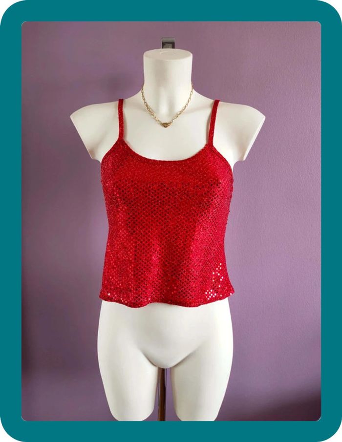 Magnfique débardeur rouge Y2k En parfait état Crop top Paillettes