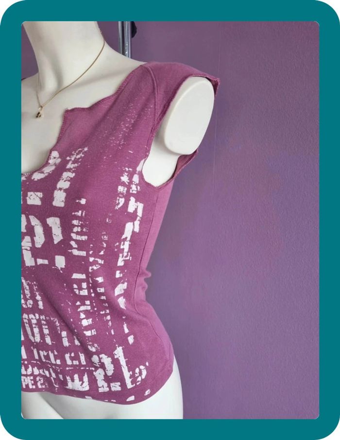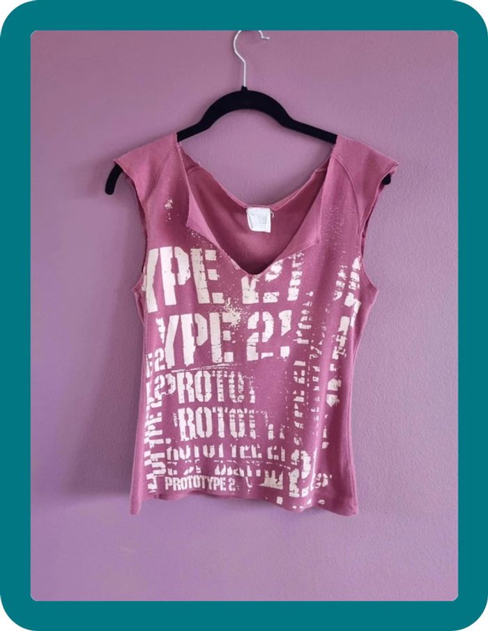 Magnifique débardeur 100% coton Y2k Année 2000 Beau décolleté en V Couleurs rose fushia et rose clair Écriture à l'avant Pas d'indication de taille mais équivaut à un S-M Référez vous au dimensions 👇 Dimensions : - Largeur épaules : 44 cm - Largeur aiselles : 38 cm - Longueur dos : 51 cm