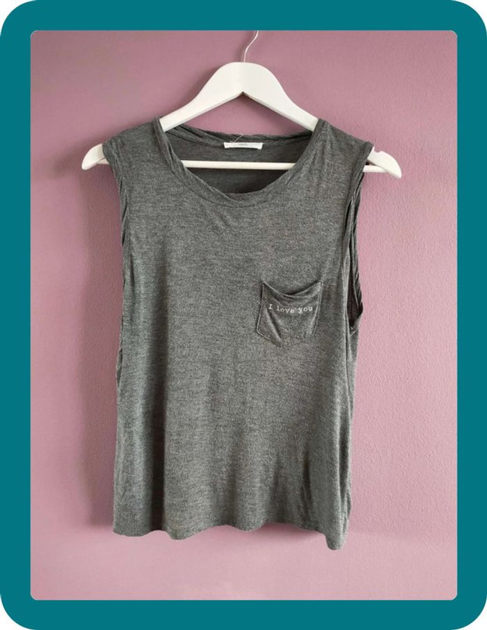 Magnifique débardeur gris Mango Écriture sur la poche avant Taille : XS En parfait état