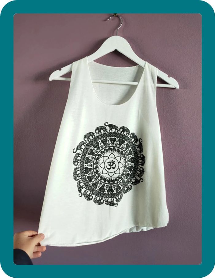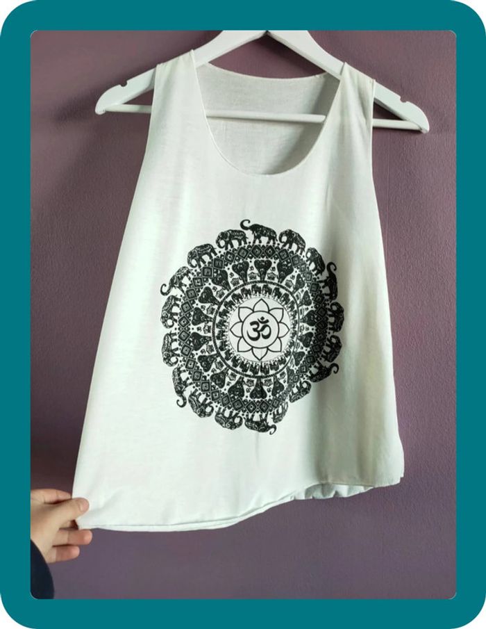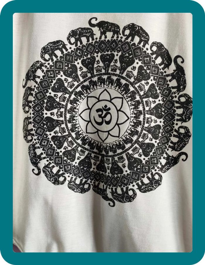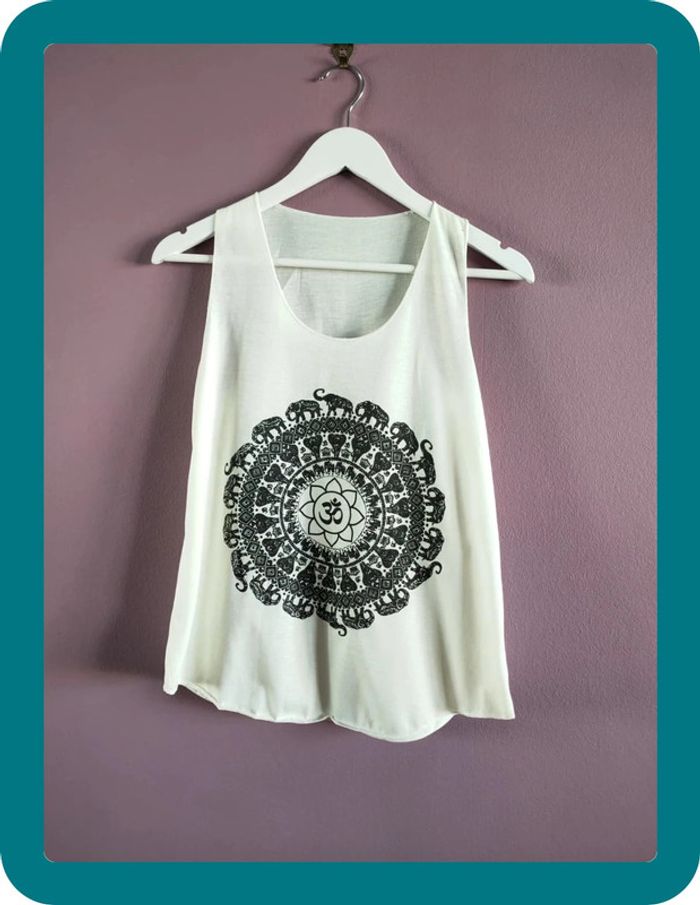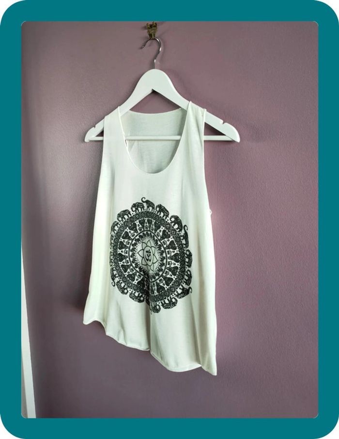 Magnifique débardeur hippie vintage Mandala sur le devant Il est de couleurs : blanc, crème, et noir En parfait état