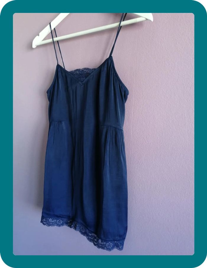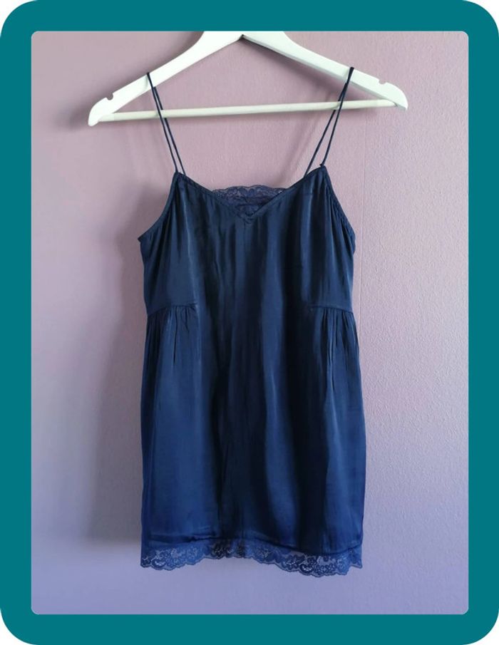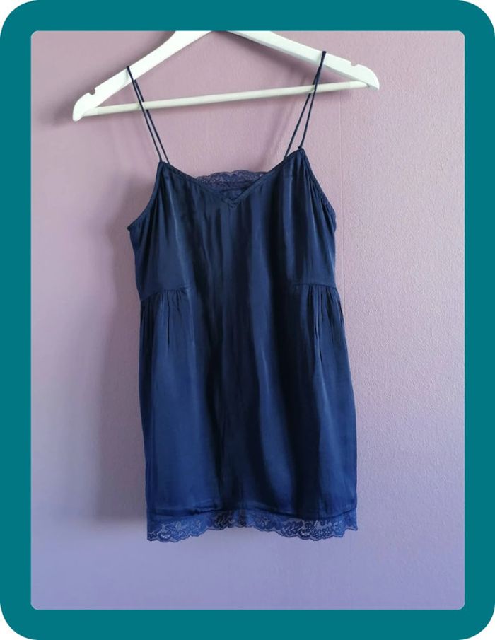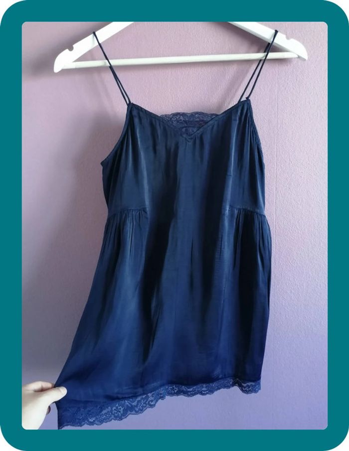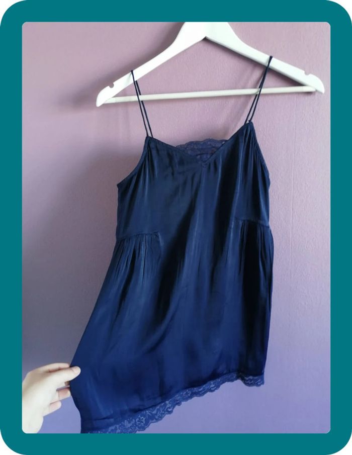 Magnifique top en satin avec dentelle vintage bleu marine En parfait état Taille : S - M #ngteeshirt
