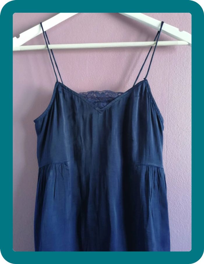 Top en satin avec dentelle vintage bleu marine - photo numéro 7
