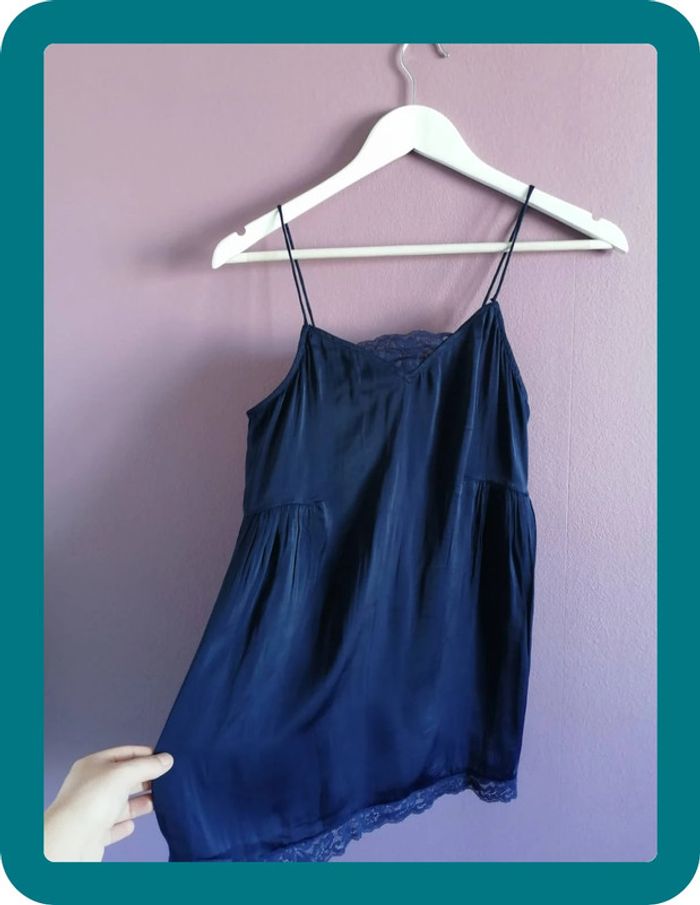 Top en satin avec dentelle vintage bleu marine - photo numéro 9