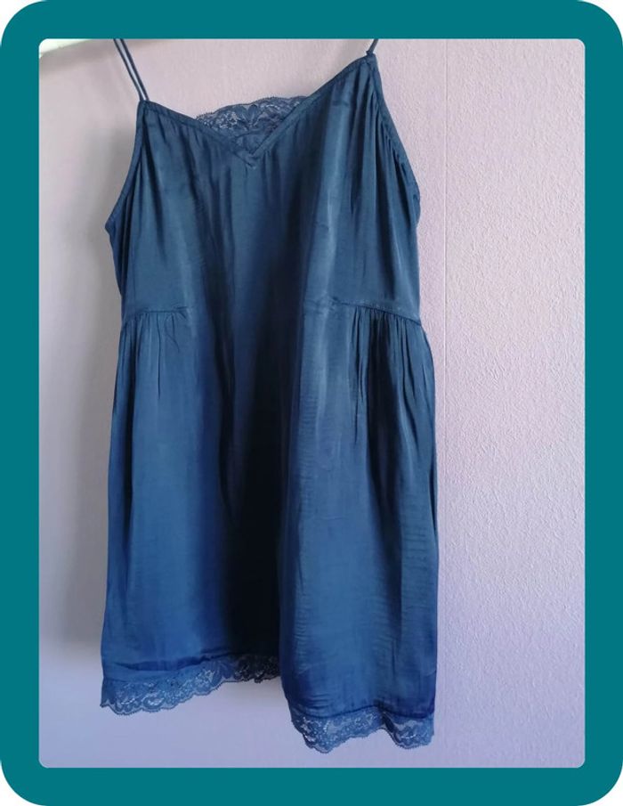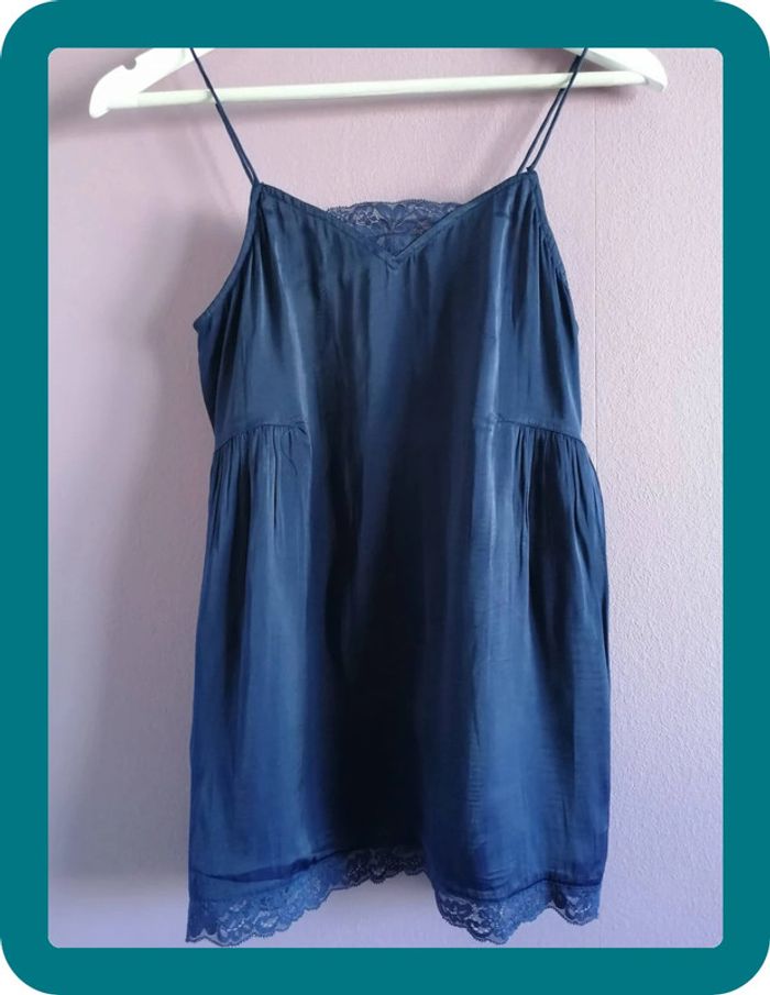 Top en satin avec dentelle vintage bleu marine - photo numéro 2