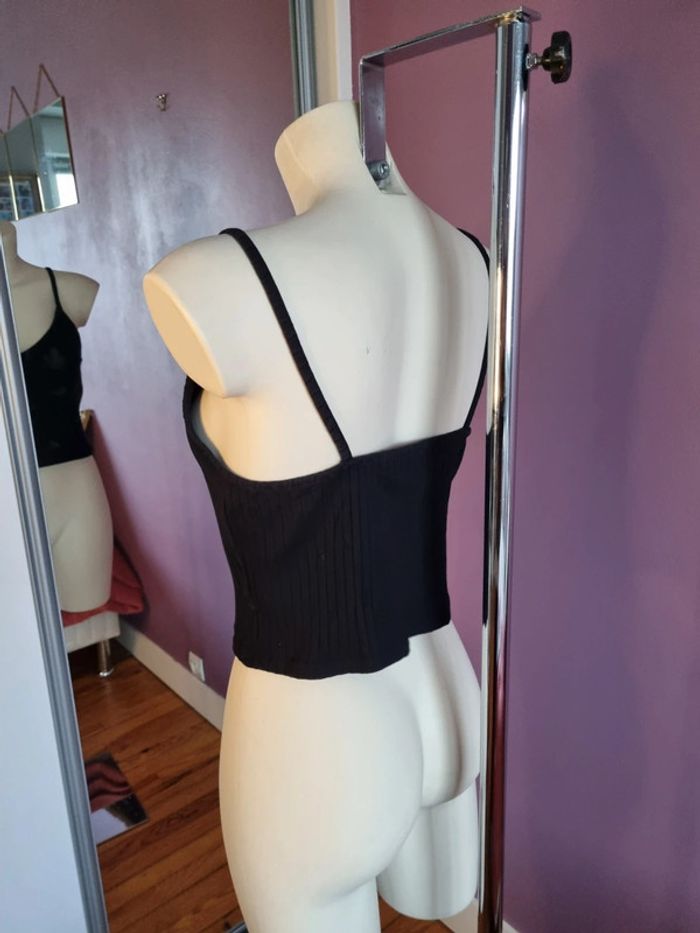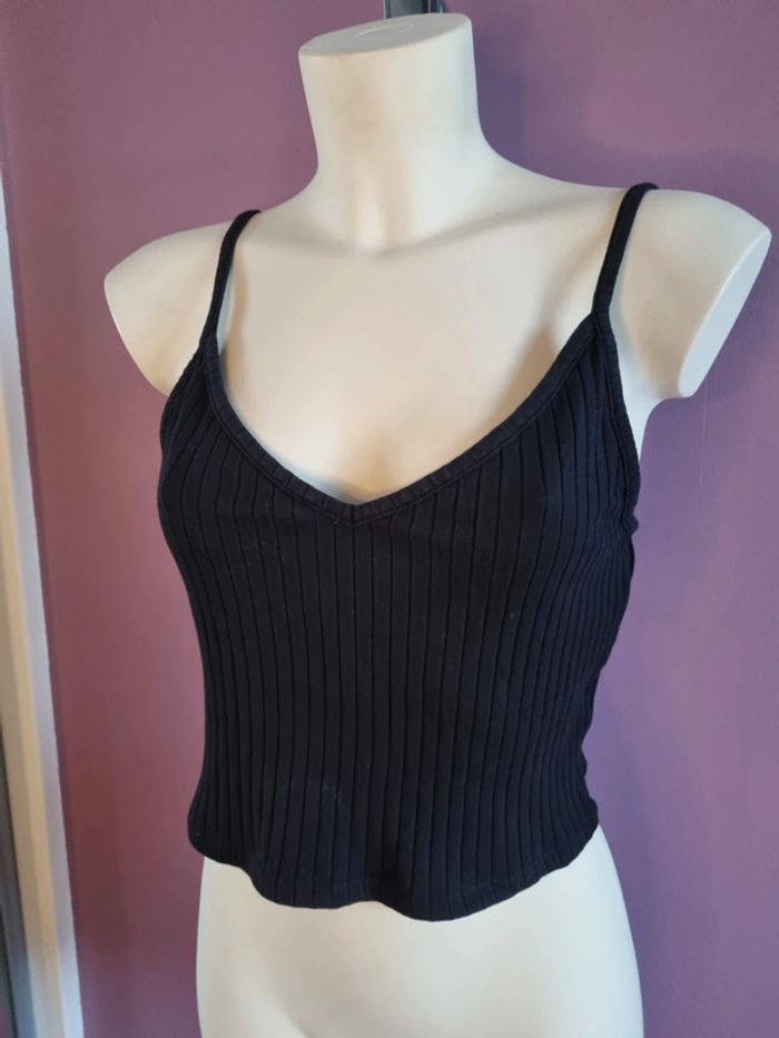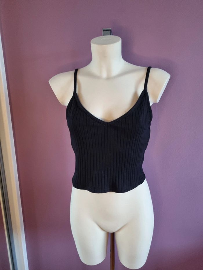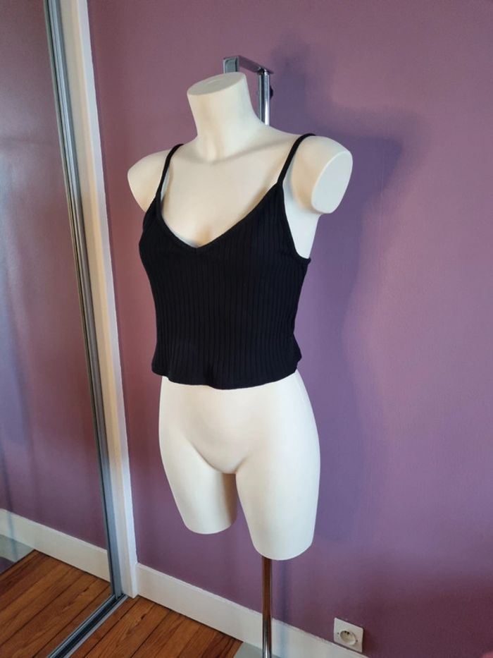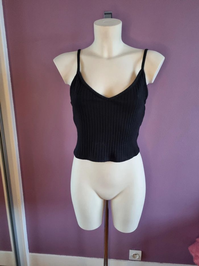 Magnifique débardeur côtelé noir Col en V Marque : H&M Taille M En parfait état Dimensions : - Largeur aiselles : 41 cm - Largeur taille : 37 cm - Longueur avec bretelles : 42 cm