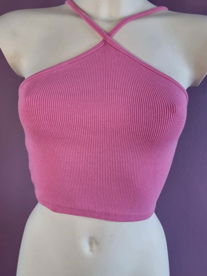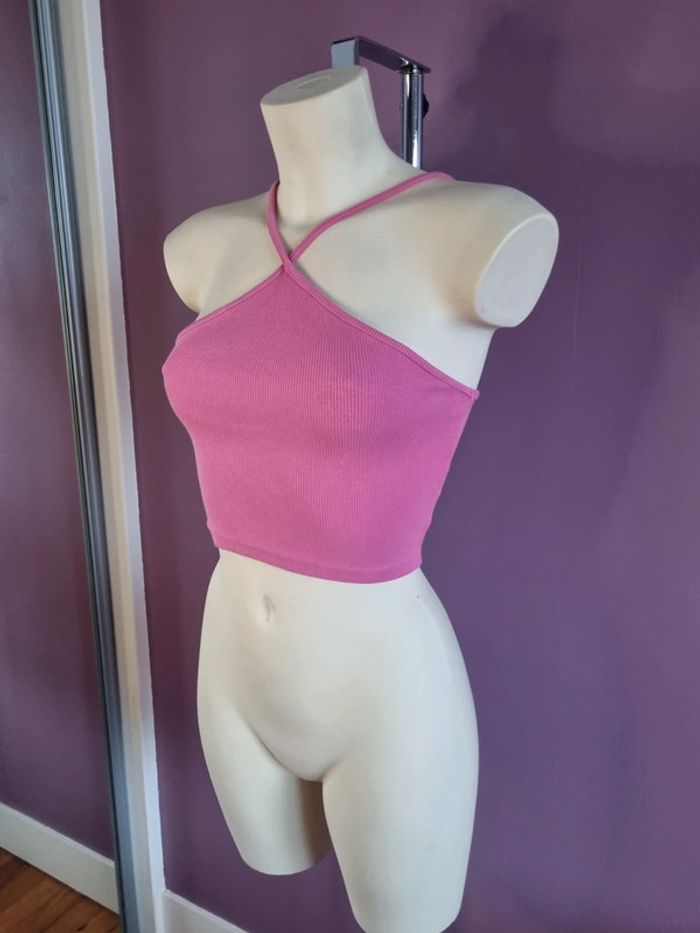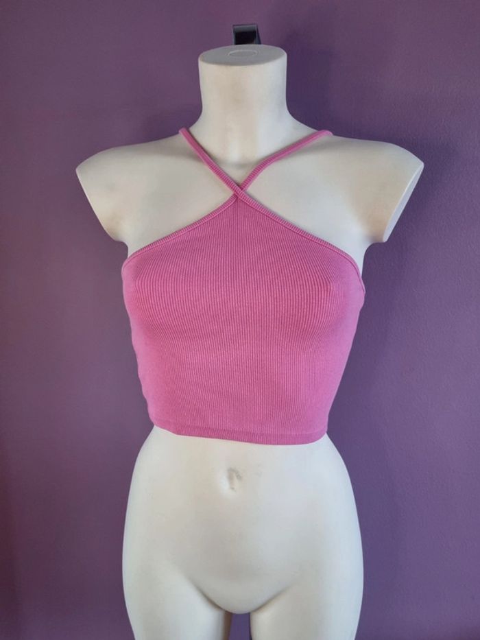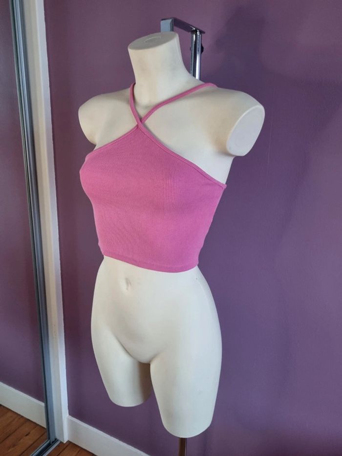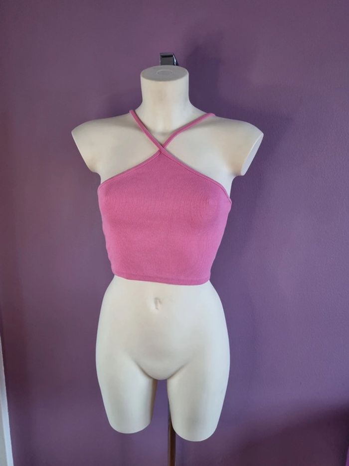 Beau crop top rose de la marque Zara En parfait état Croisé à l'avant Taille M Dimensions : - Largeur aiselles : 34 cm - Longueur dos avec bretelles : 40 cm - Largeur taille : 32 cm