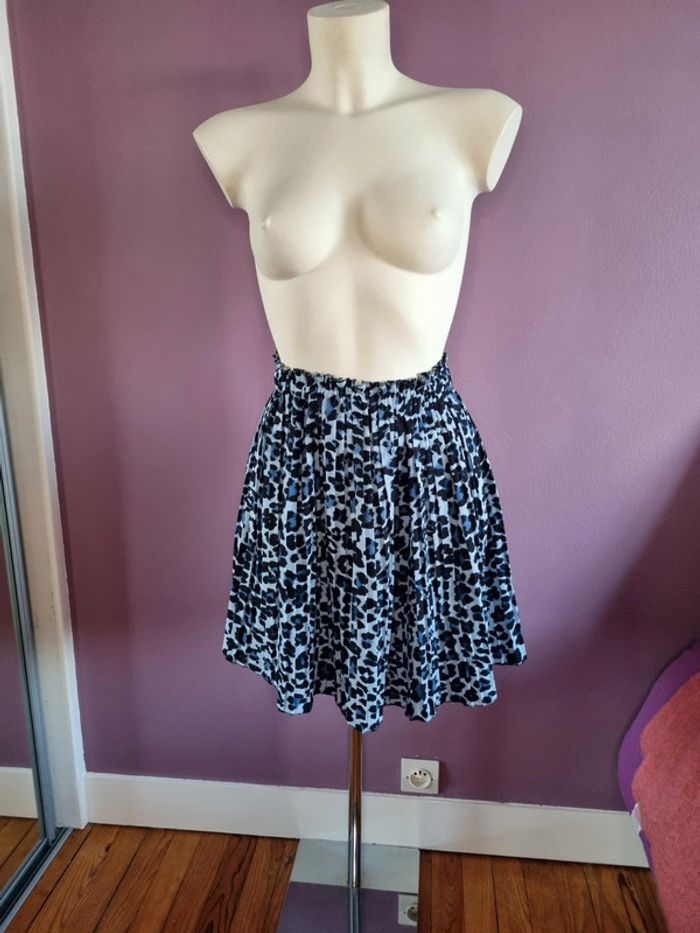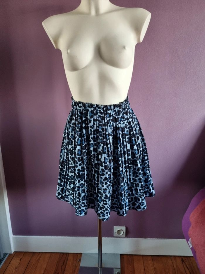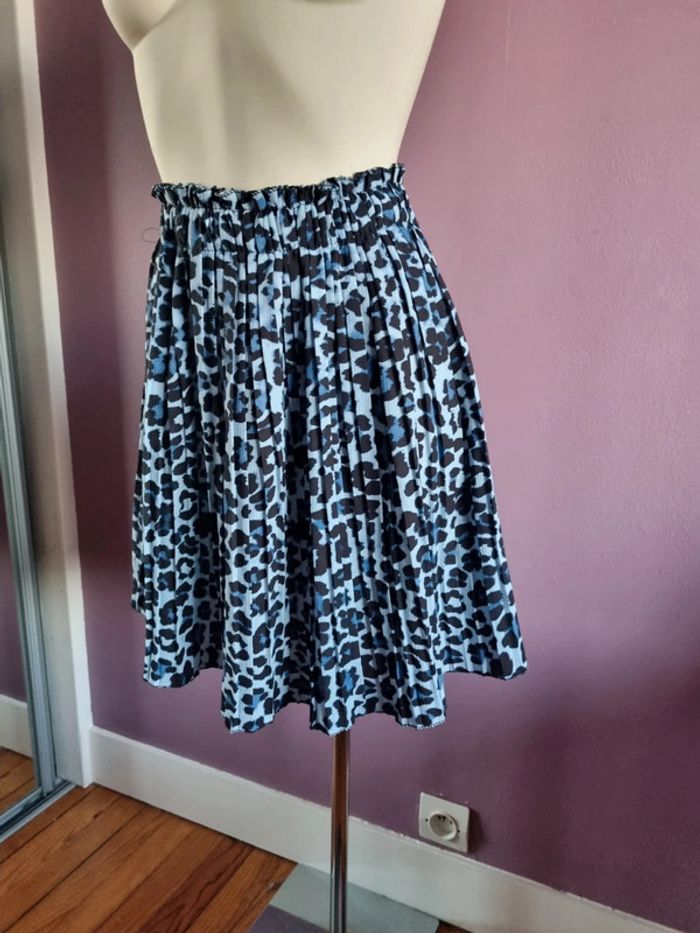 Jupe plissé évasé léopard bleuté - photo numéro 1