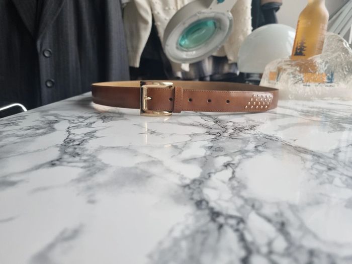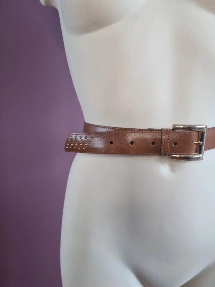 Ceinture en cuir marron doré vintage - photo numéro 19