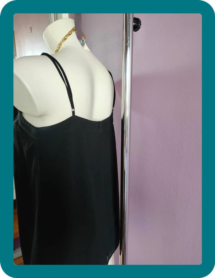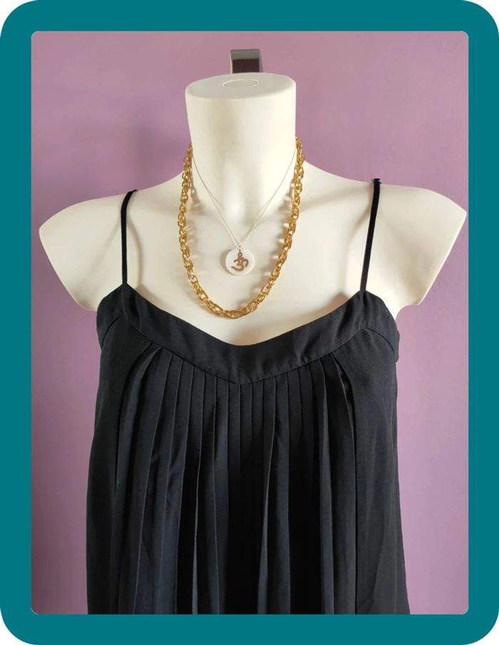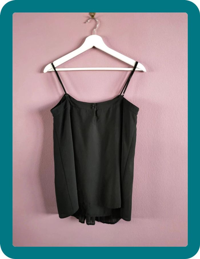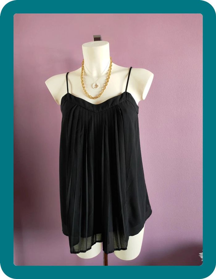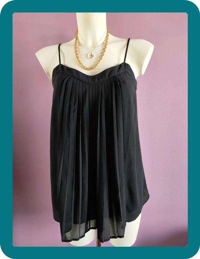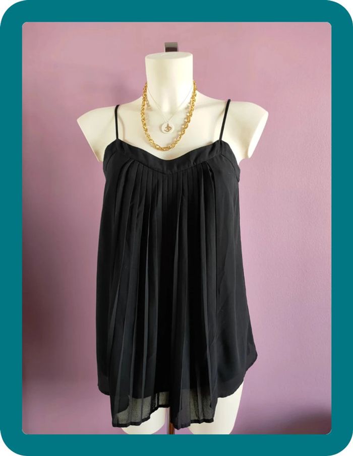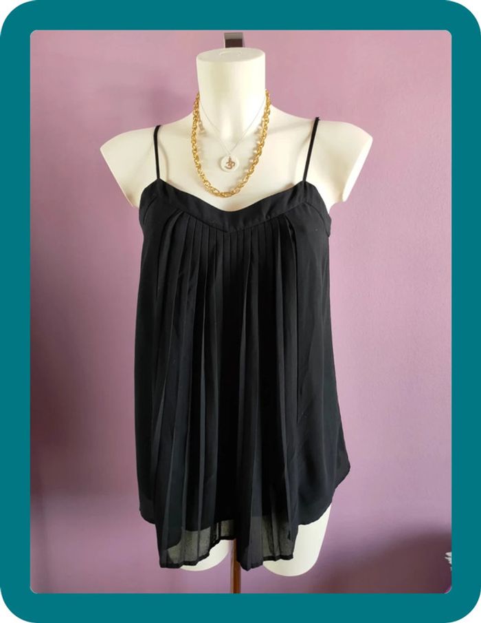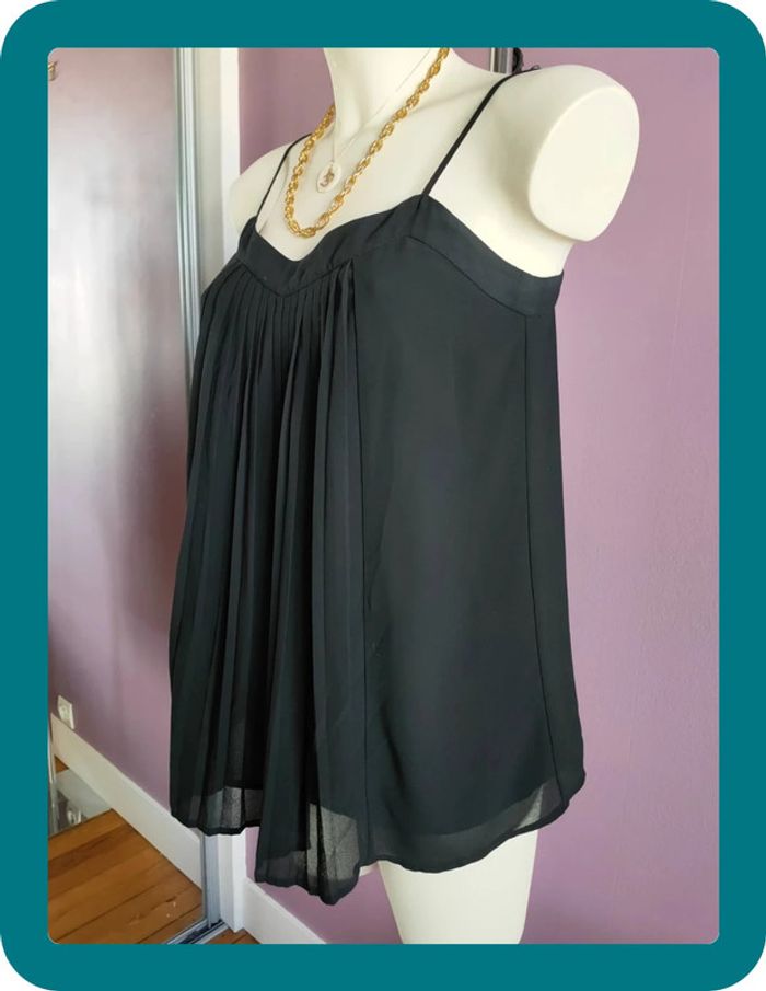 Magnifique débardeur noir de la marque Mint & berry Taille M Effet plissé sur le devant Deux boutons noir à l'arrière En parfait état