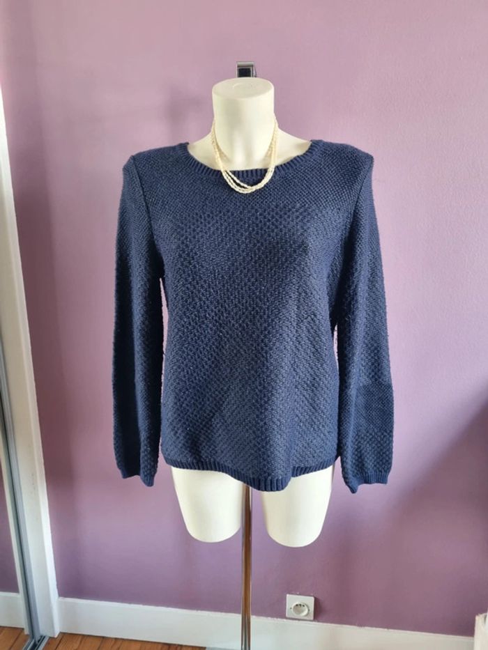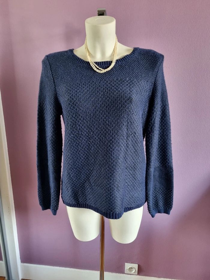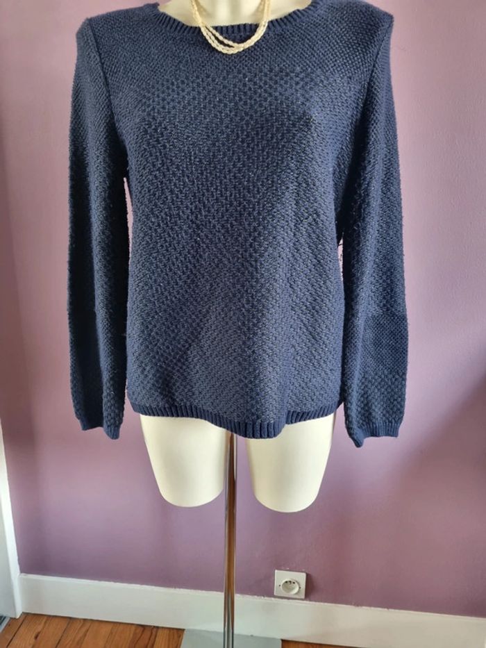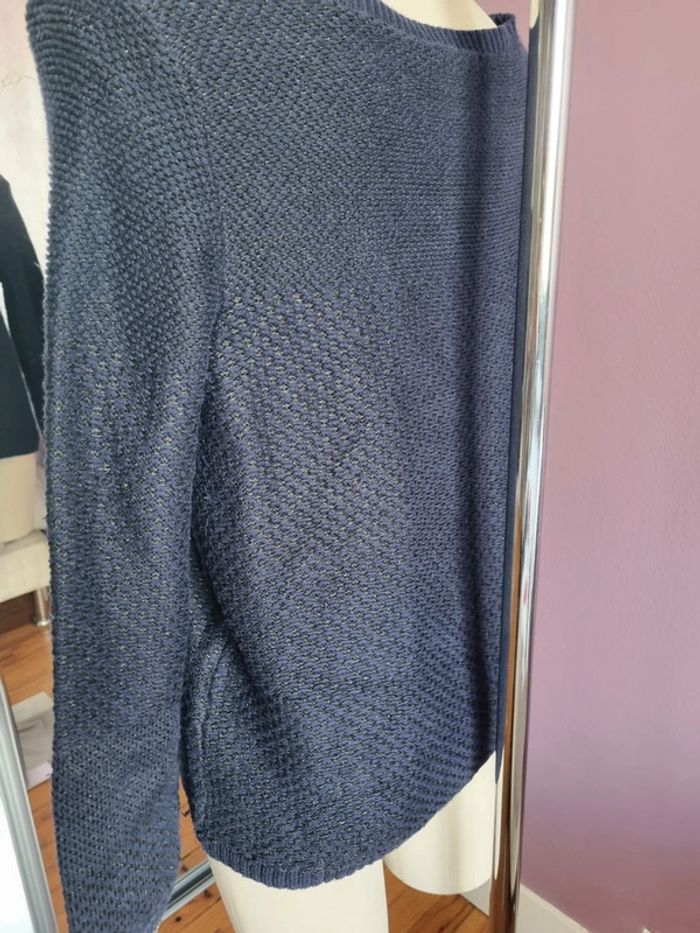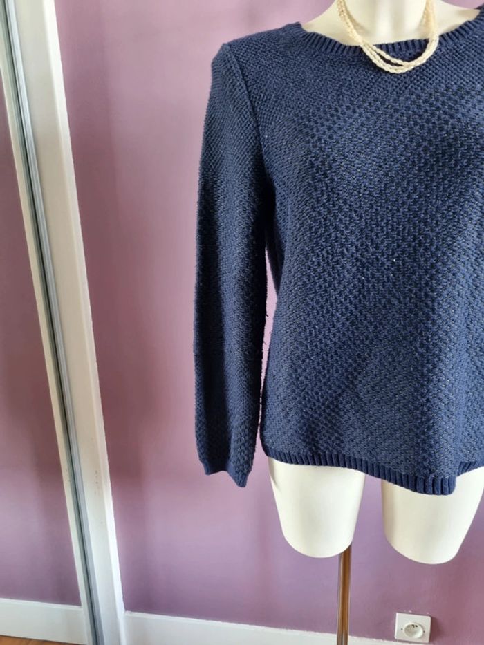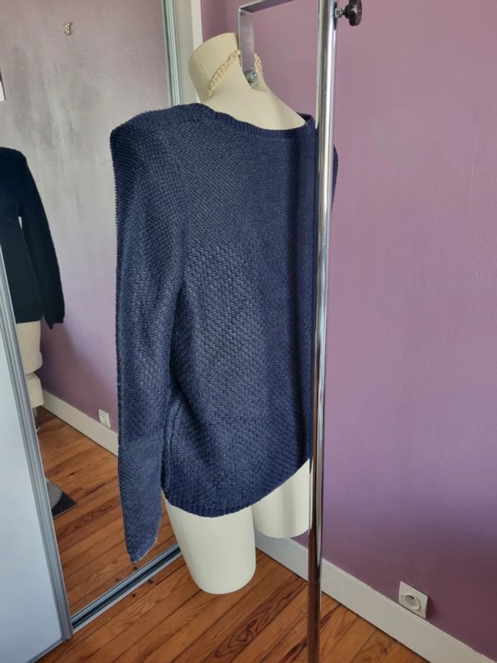 Magnifique pull bleu marine Kookai En bon état Légèrement pailleté Effet maille Col et manche resseré Taille M Dimensions : - Longueur dos : 62 cm - Largeur épaules : 32 cm - Largeur aiselles : 32 cm