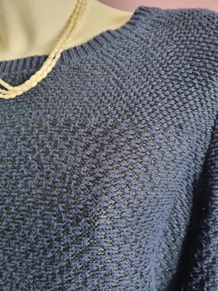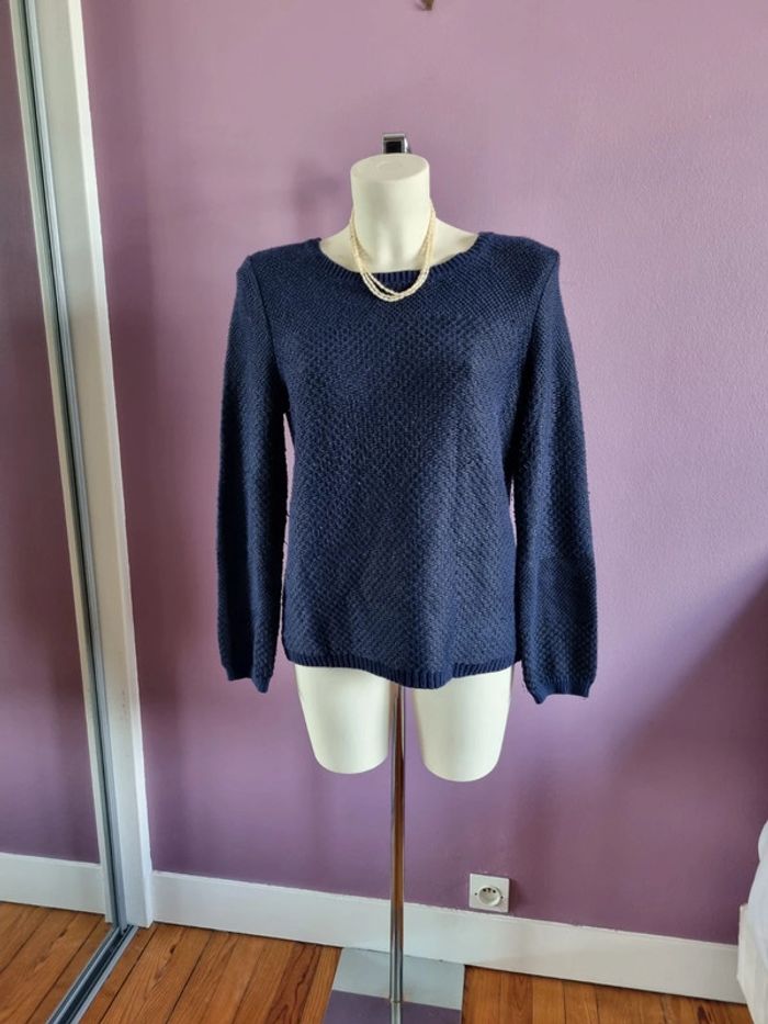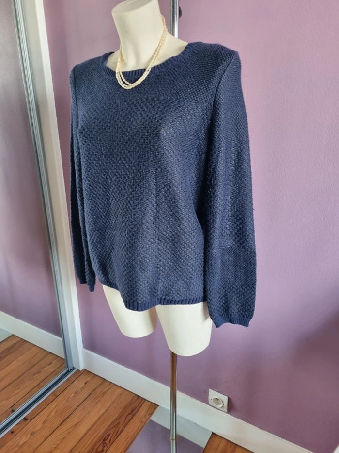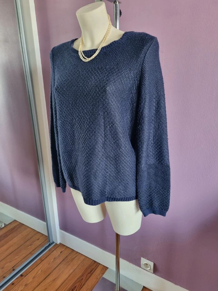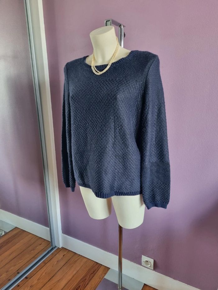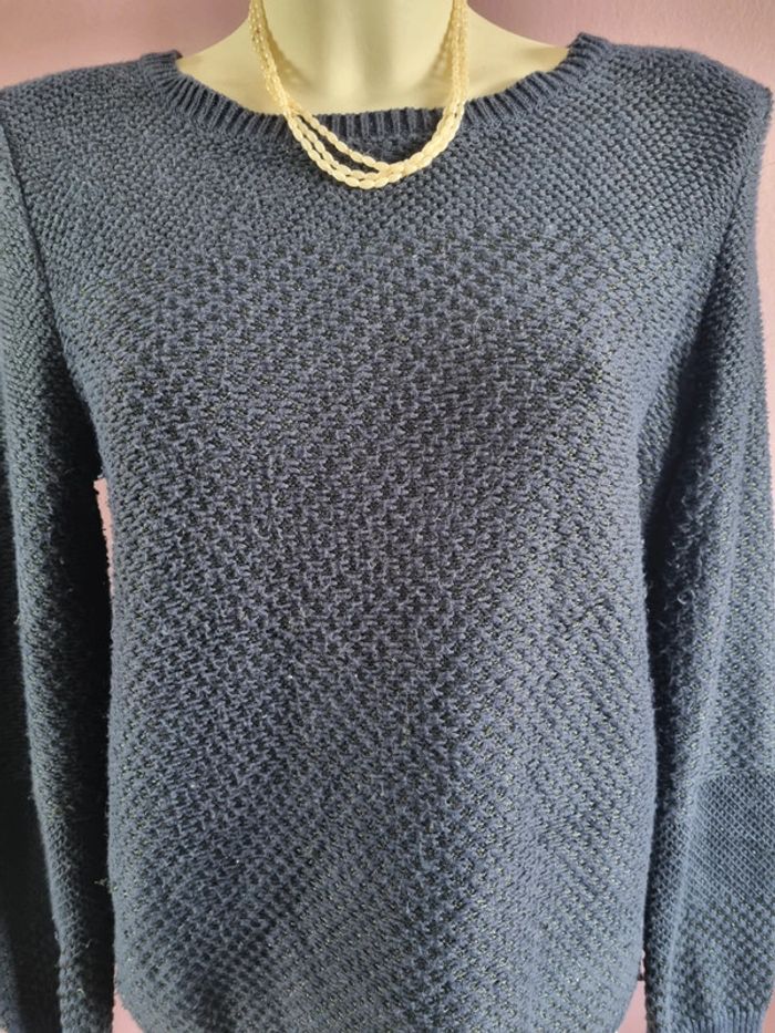 Magnifique pull bleu marine Kookai En bon état Légèrement pailleté Effet maille Col et manche resseré Taille M Dimensions : - Longueur dos : 62 cm - Largeur épaules : 32 cm - Largeur aiselles : 32 cm