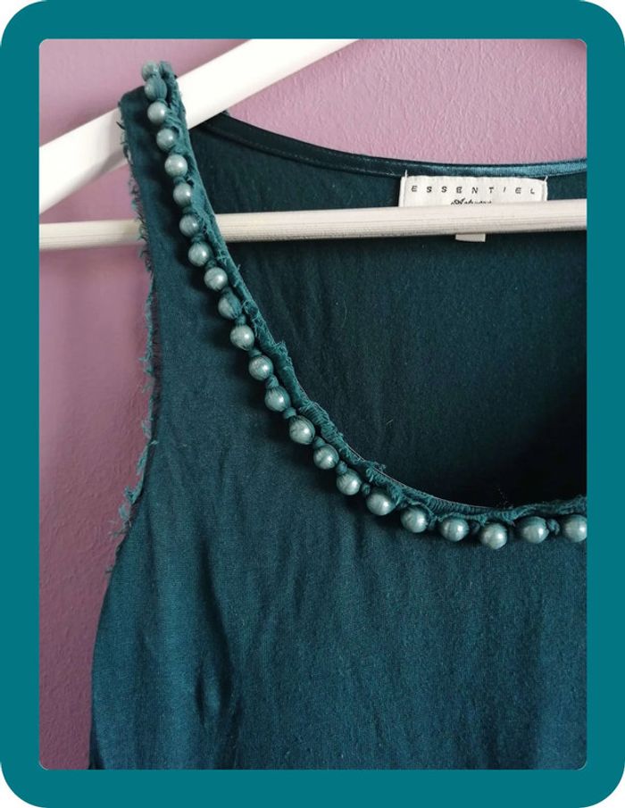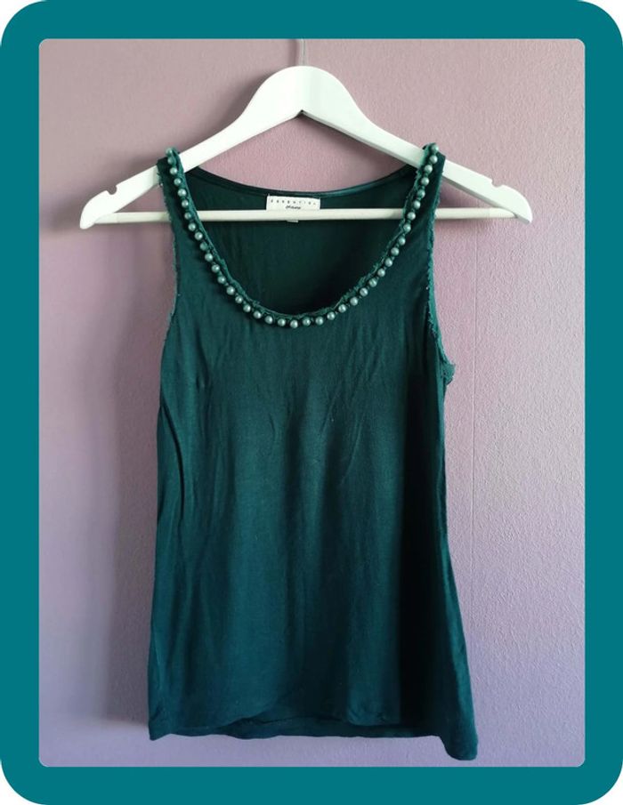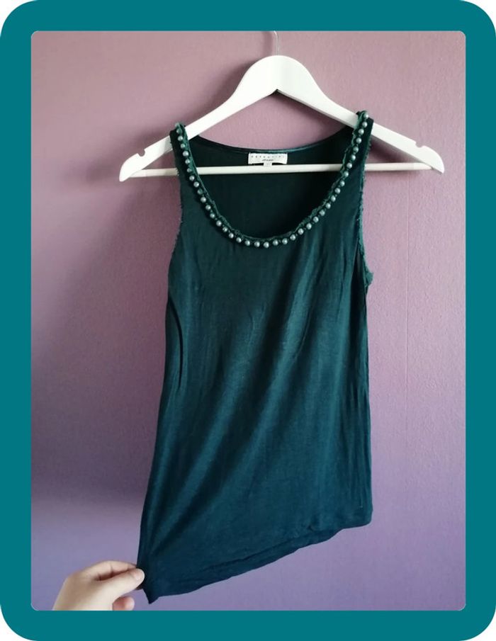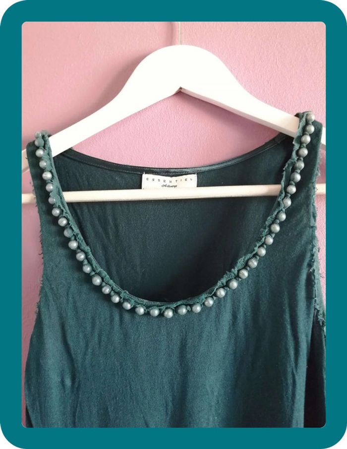 Magnfique débardeur verdeau vintage avec de très belle perles sur le col. Effet effiloché sur le col également. En parfait état #ngteeshirt