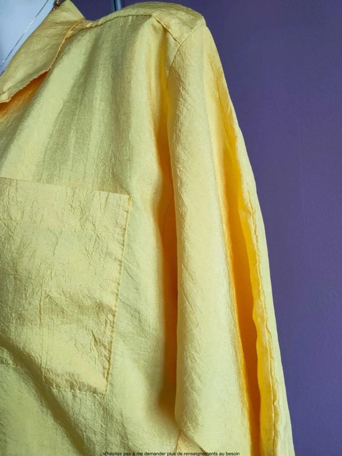 Magnifique chemise jaune vintage Effet froissé Manche chauve souris / s'arrête juste un peu en dessous du coude En parfait état Taille 36 a 40
