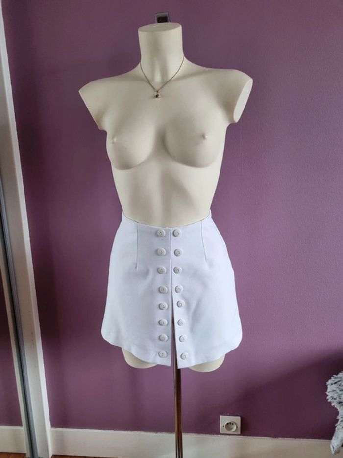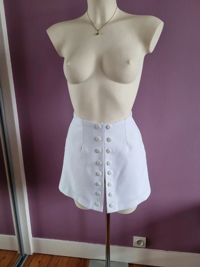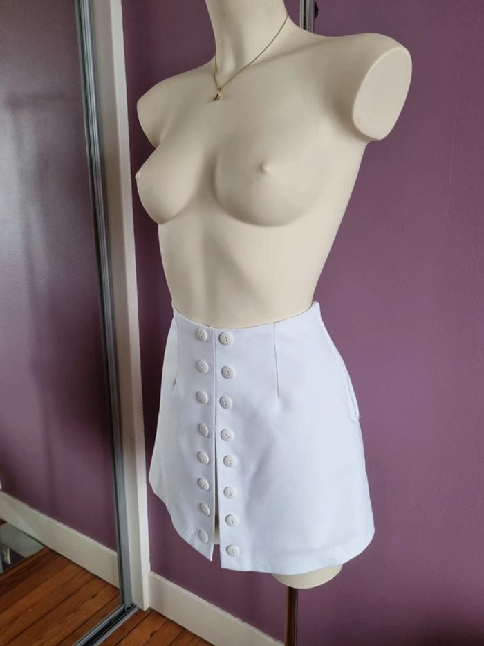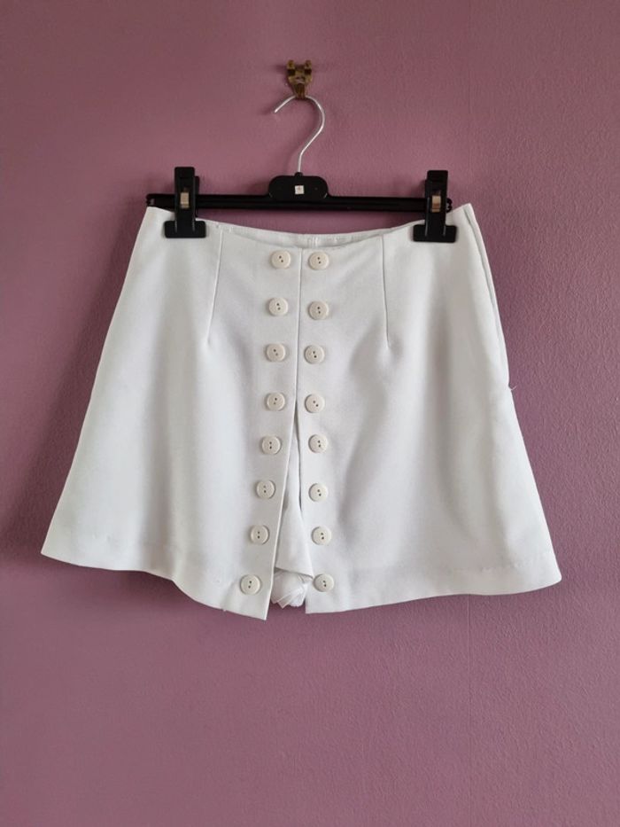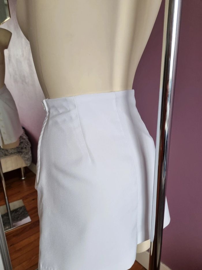 Magnifique jupe-short blanc Y2k de la marque Jennyfer Boutons tout le long du short Doublure à l'intérieur Taille : S Dimensions : - Longueur : 37 cm - Largeur taille : 34 cm En parfait état Année '90