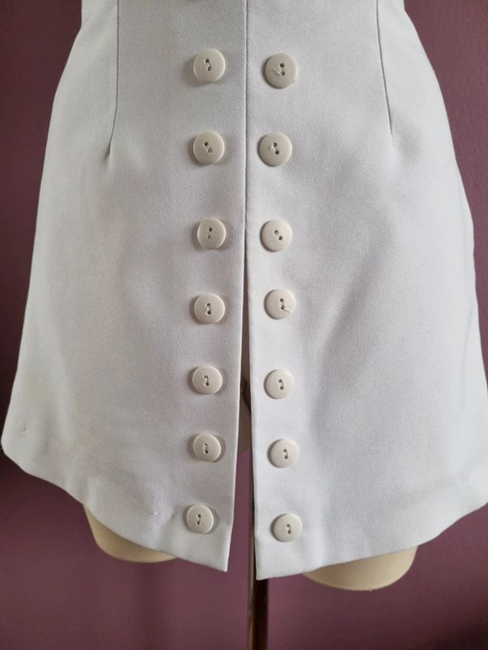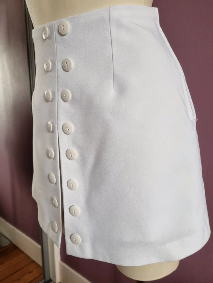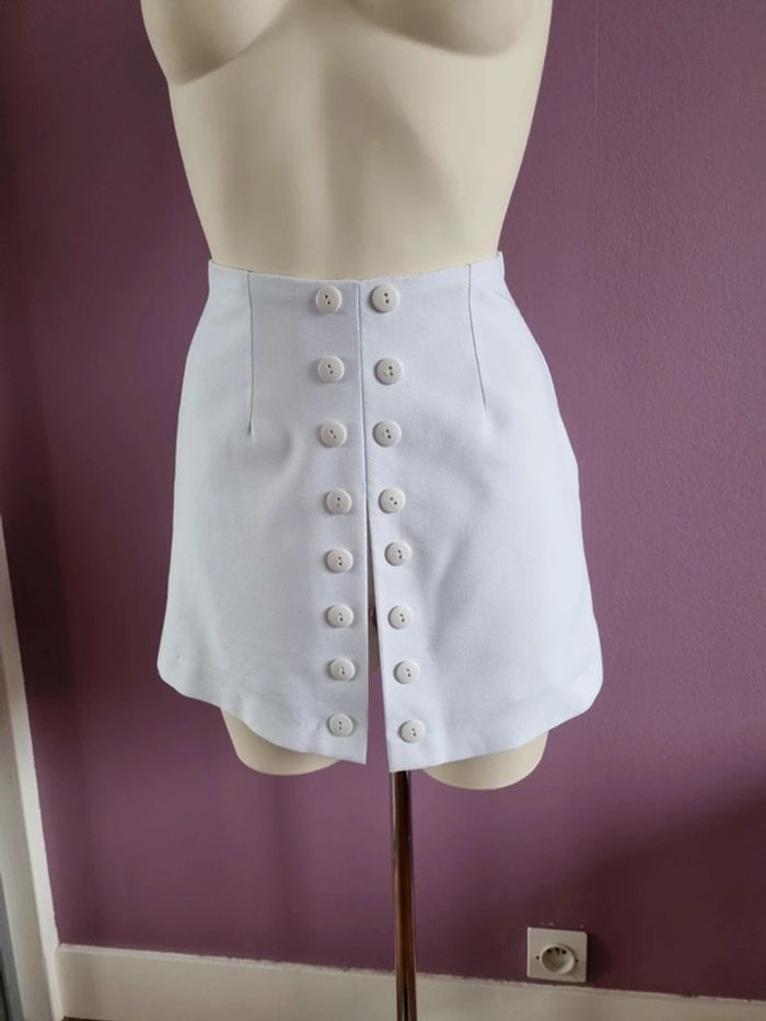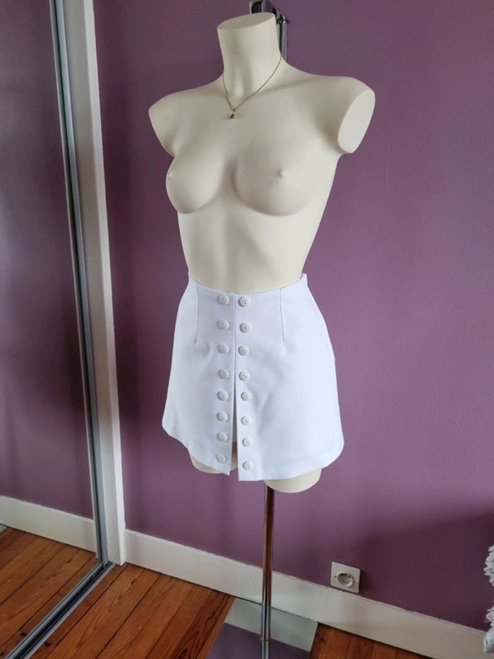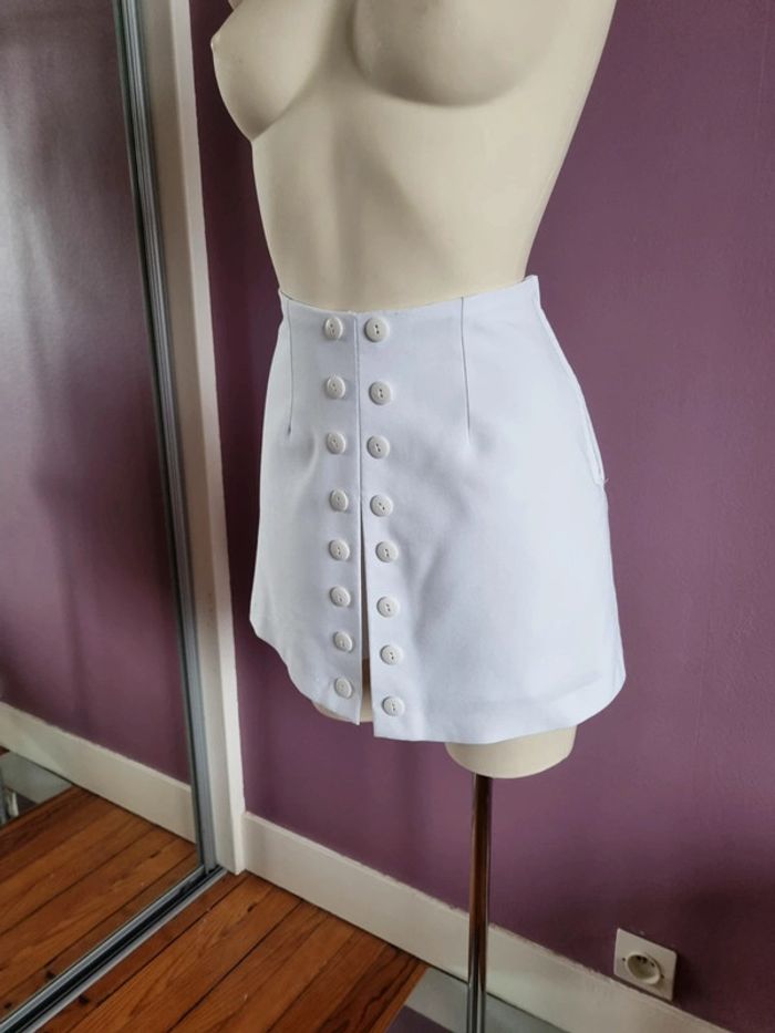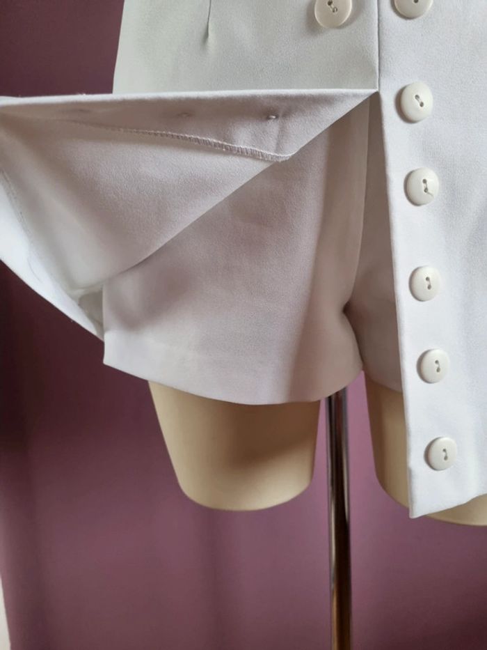 Magnifique jupe-short blanc Y2k de la marque Jennyfer Boutons tout le long du short Doublure à l'intérieur Taille : S Dimensions : - Longueur : 37 cm - Largeur taille : 34 cm En parfait état Année '90