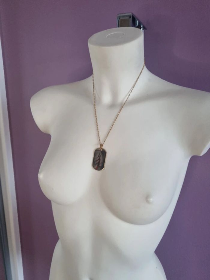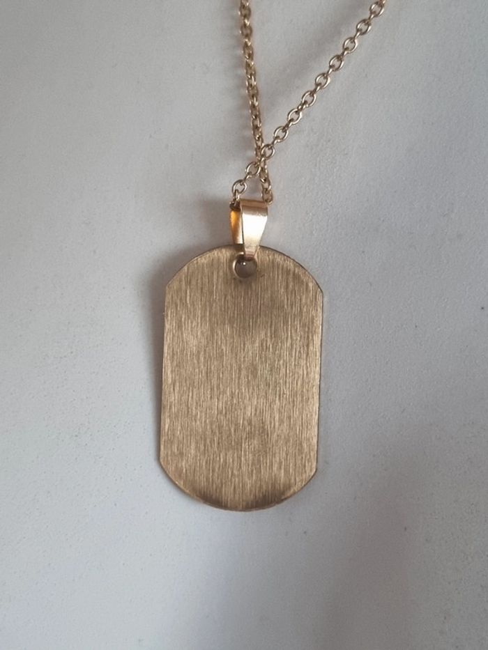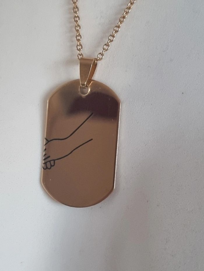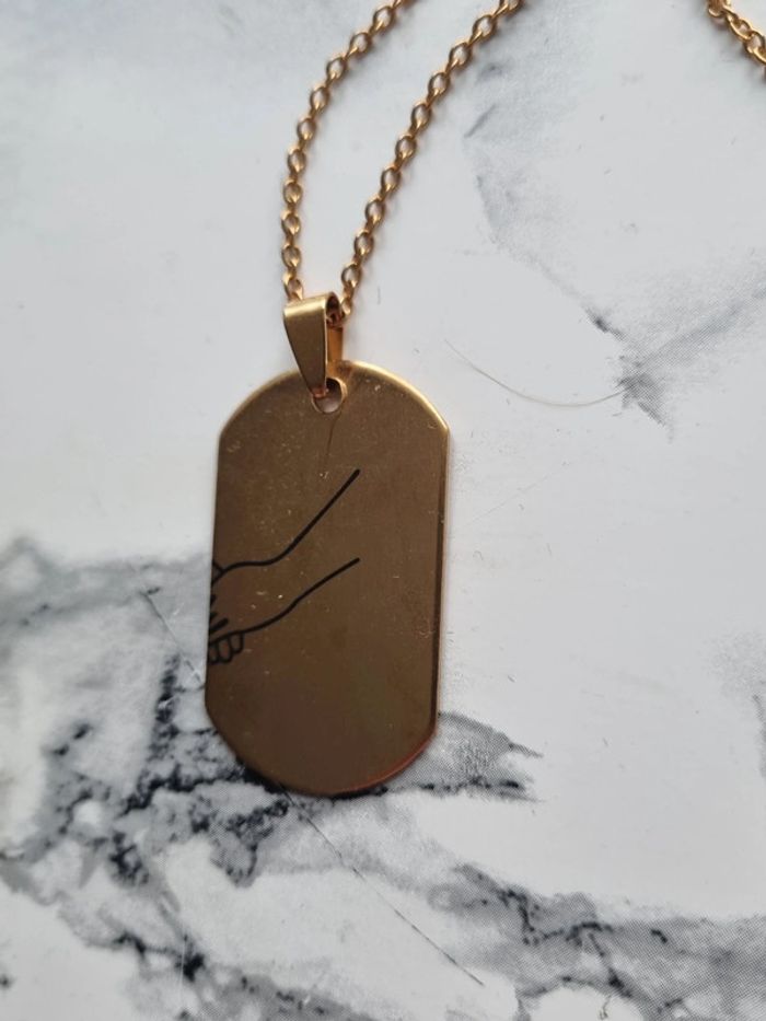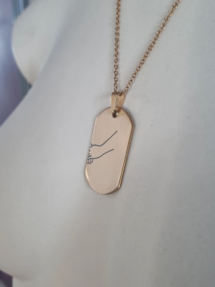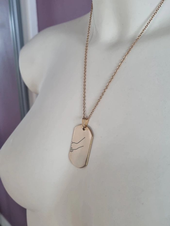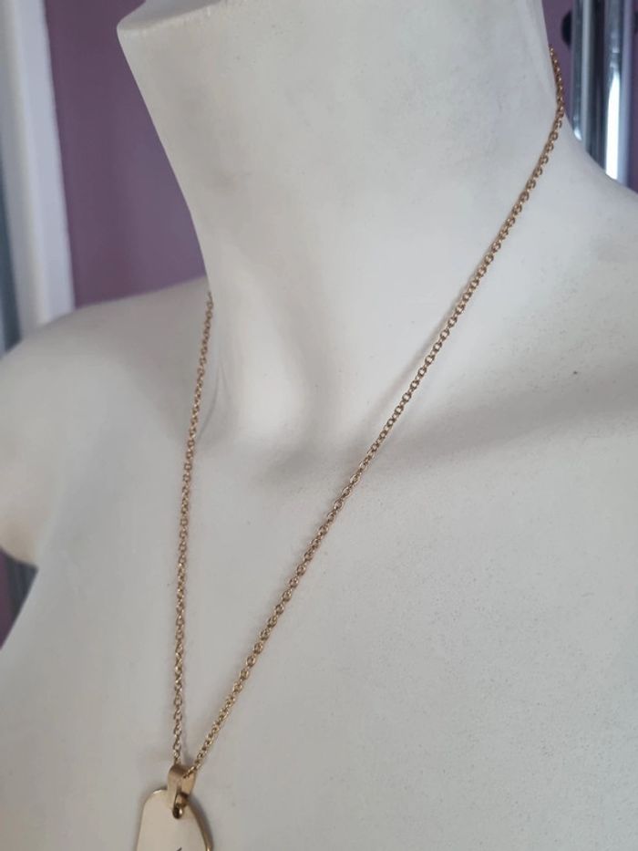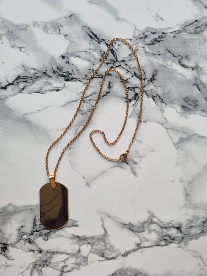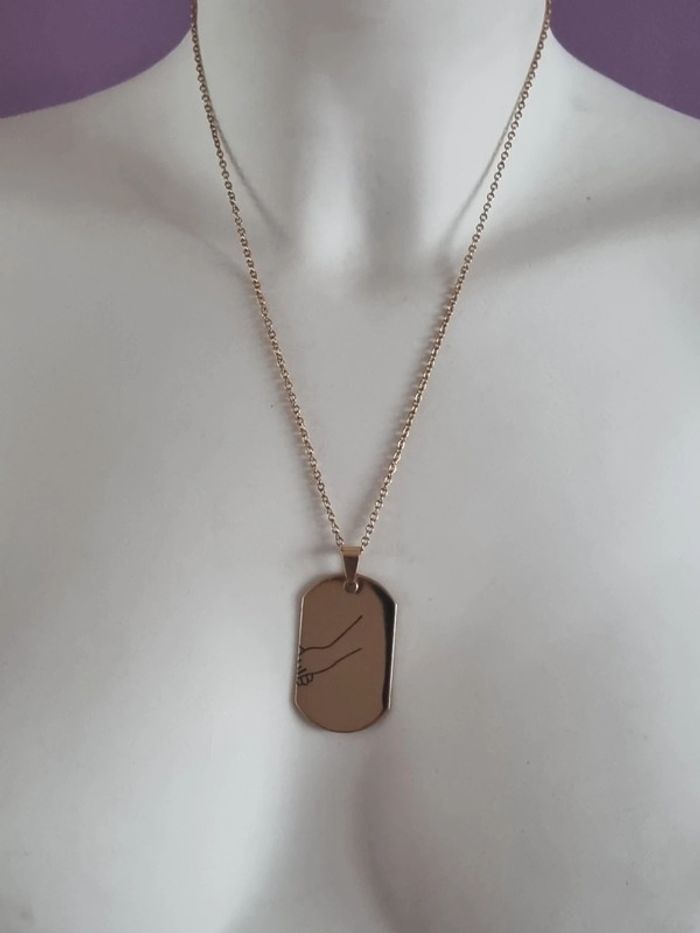 Beau collier doré à chaine Pendentif avec logo d'une main En parfait état Dimensions : - Longueur de la chaine : 51 cm - Largeur du pendentif : 3,5 cm - Hauteur du pendantif : 4,5 cm - Largeur de la chaîne : 0,2 cm