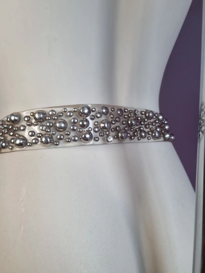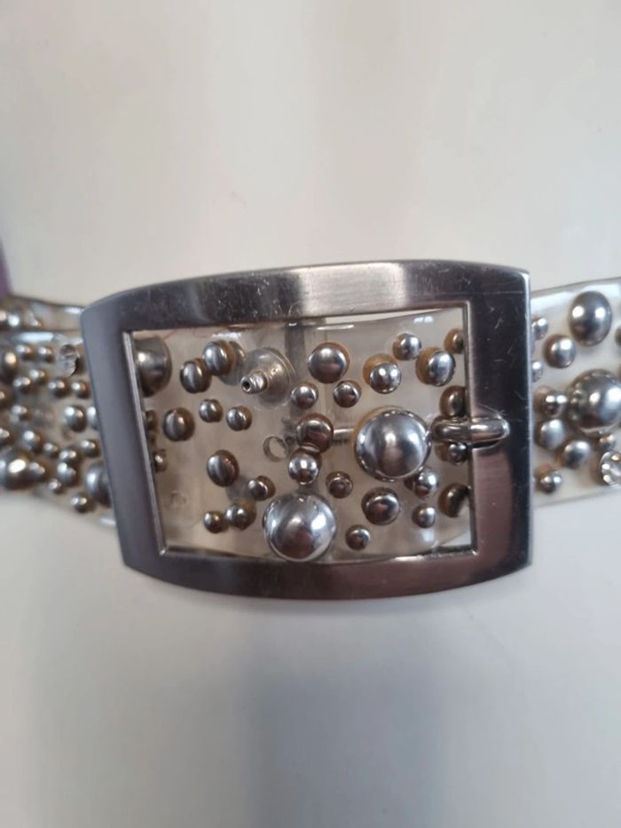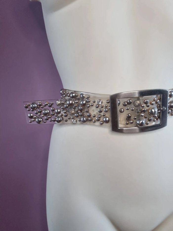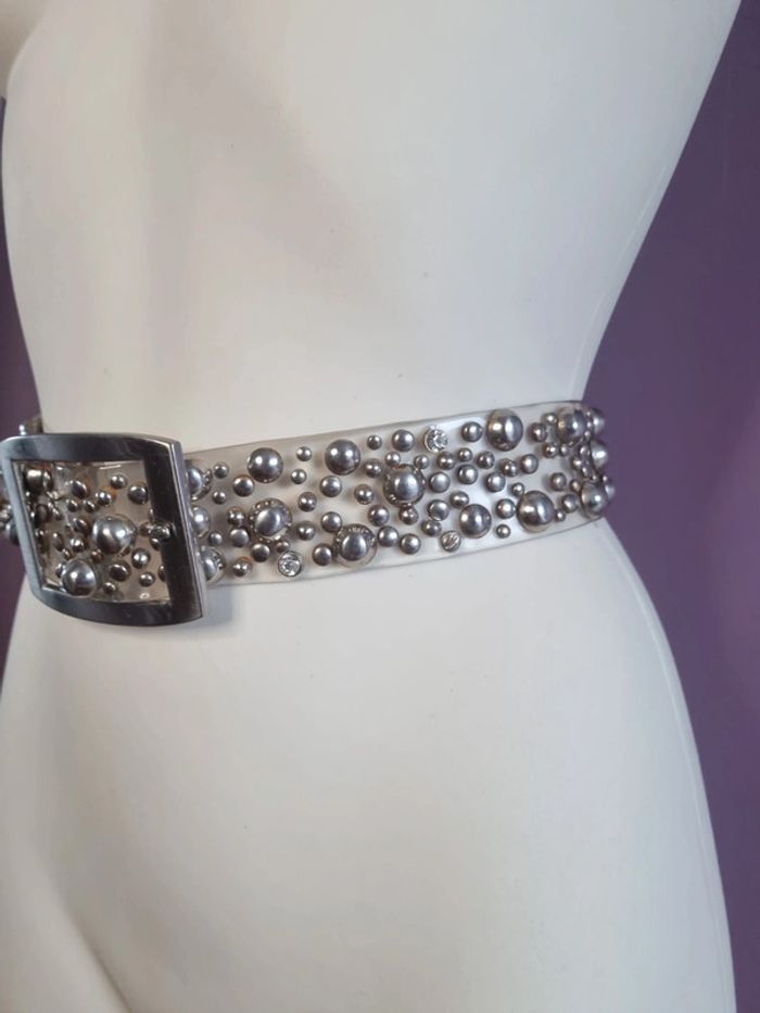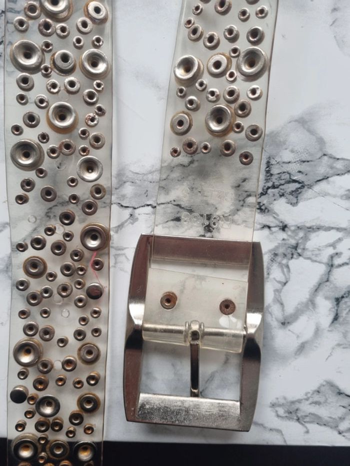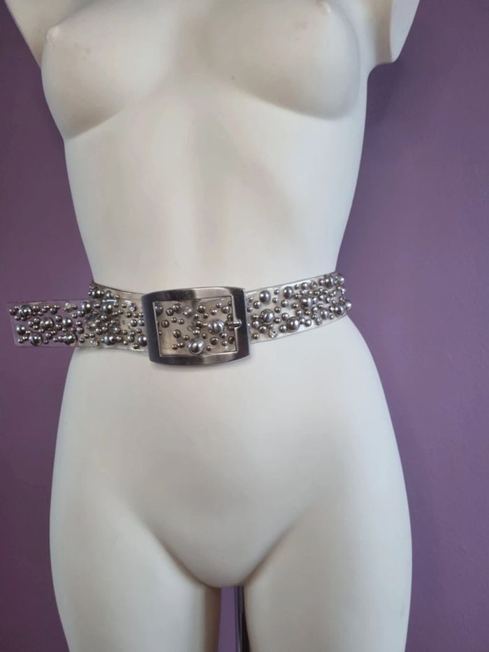 Magnifique ceinture transparente en PVC vintage Jolie œillet en métal Très bonne qualitée Année '70 Dimensions : - Longueur total : 101 cm - Longueur premier trou : 80 cm - Longueur dernier trou : 91 cm - Largeur : 5 cm