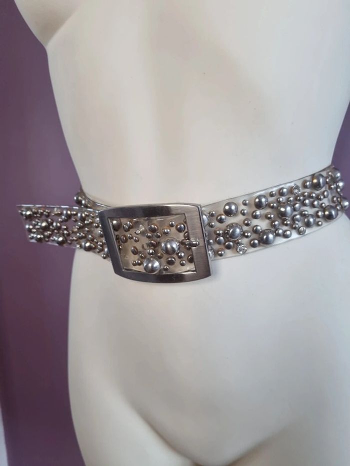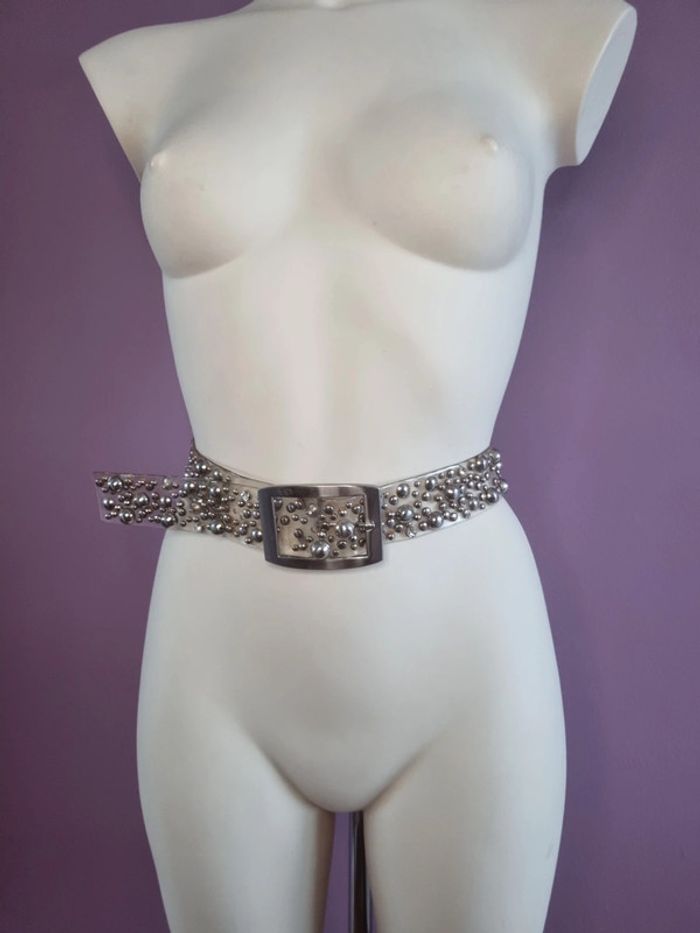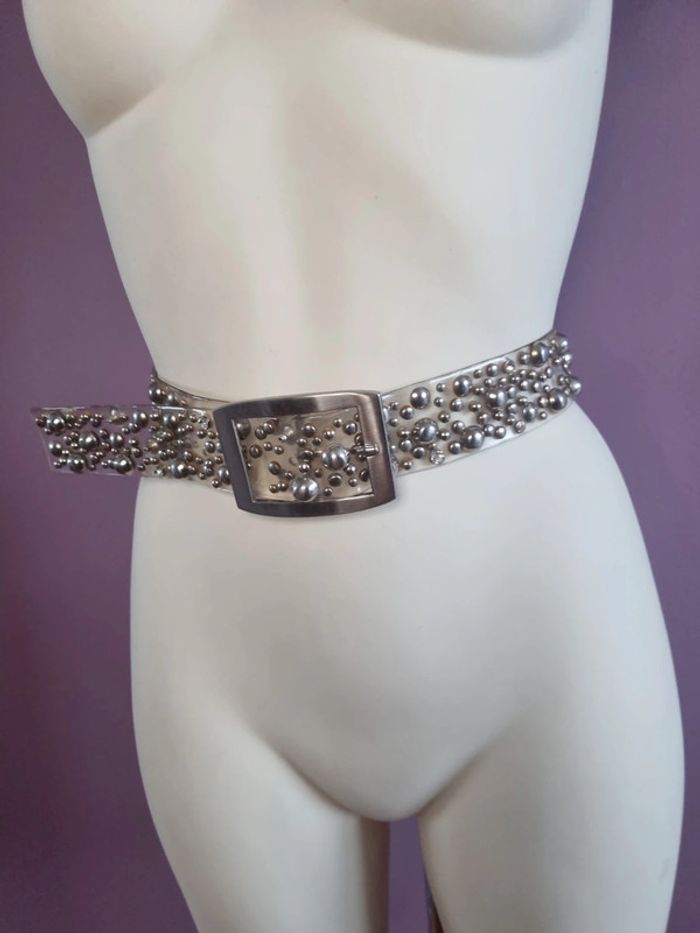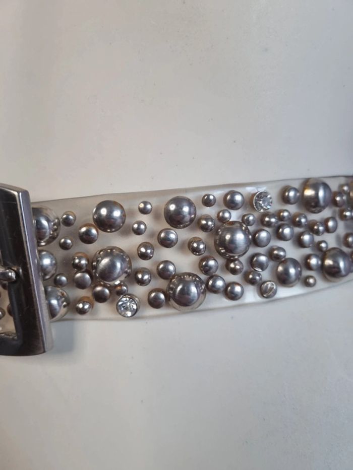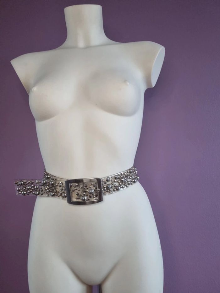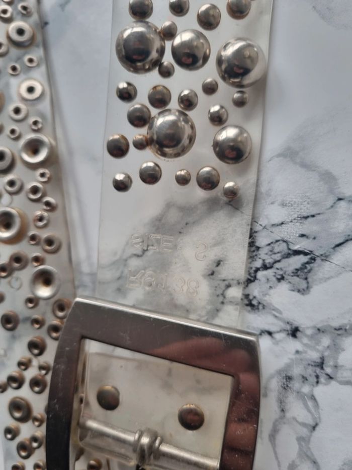 Magnifique ceinture transparente en PVC vintage Jolie œillet en métal Très bonne qualitée Année '70 Dimensions : - Longueur total : 101 cm - Longueur premier trou : 80 cm - Longueur dernier trou : 91 cm - Largeur : 5 cm