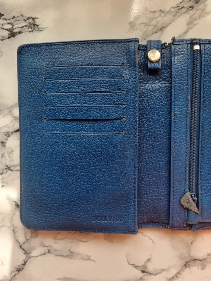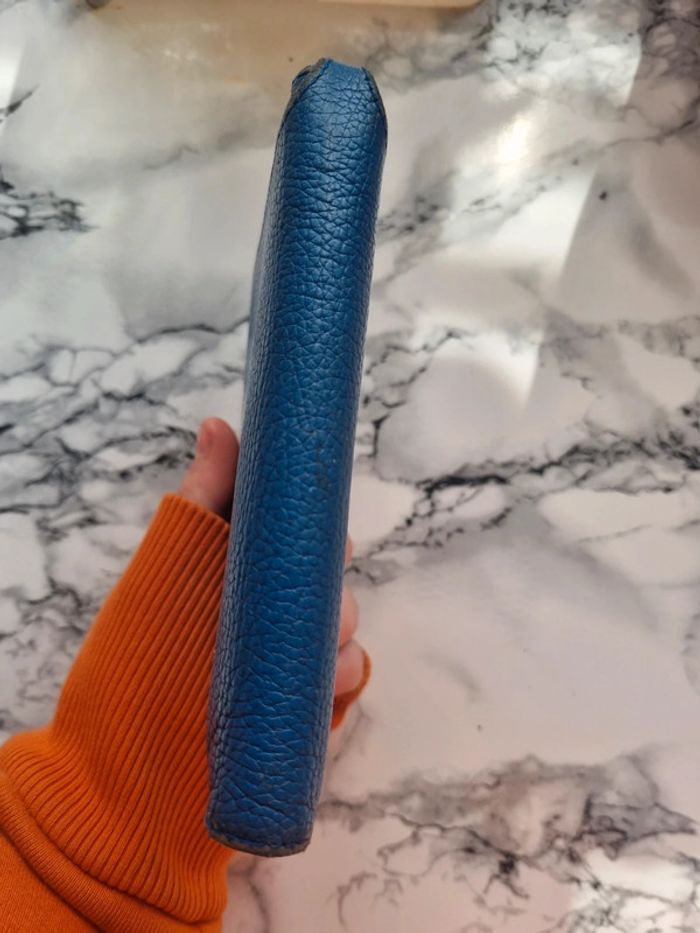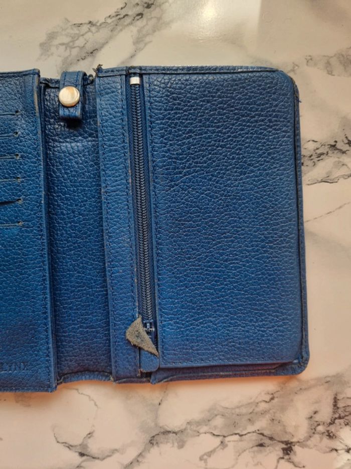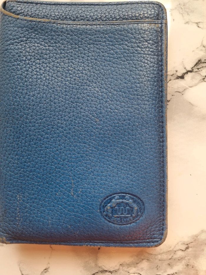 Magnifique porte monnaie en cuir vintage Couleur bleu moyen Multi-rangement Dimensions : fermé - 11 cm de large - 16 cm de hauteur - 3 cm de profondeur En bon état
