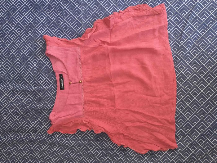 Petite tunique couleur framboise pour l été Léger et à volant sur le côté et au niveau des épaules