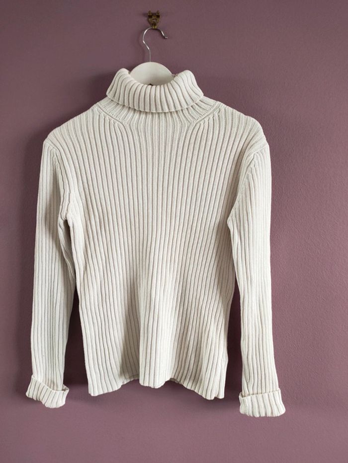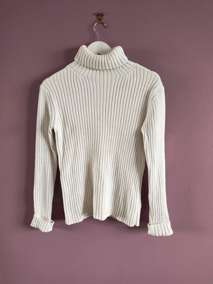 Pull en coton Gap vintage De couleur blanc Col roulé Grosse maille en 100% coton En parfait état Dimensions : - Largeur épaule : 48 cm - Longueur dos : 60 cm - Largeur poitrine : 40 cm