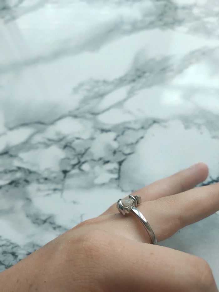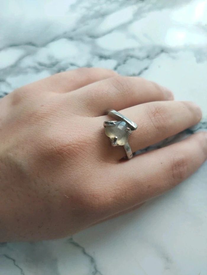 Magnfique bague argent avec Pierre blanche en forme de coeur En bon état