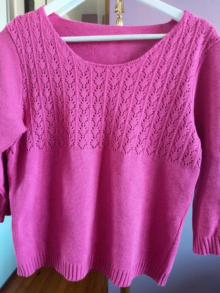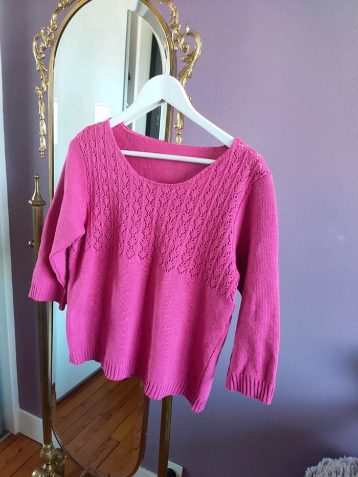Pull rose vintage brodé en coton - photo numéro 11