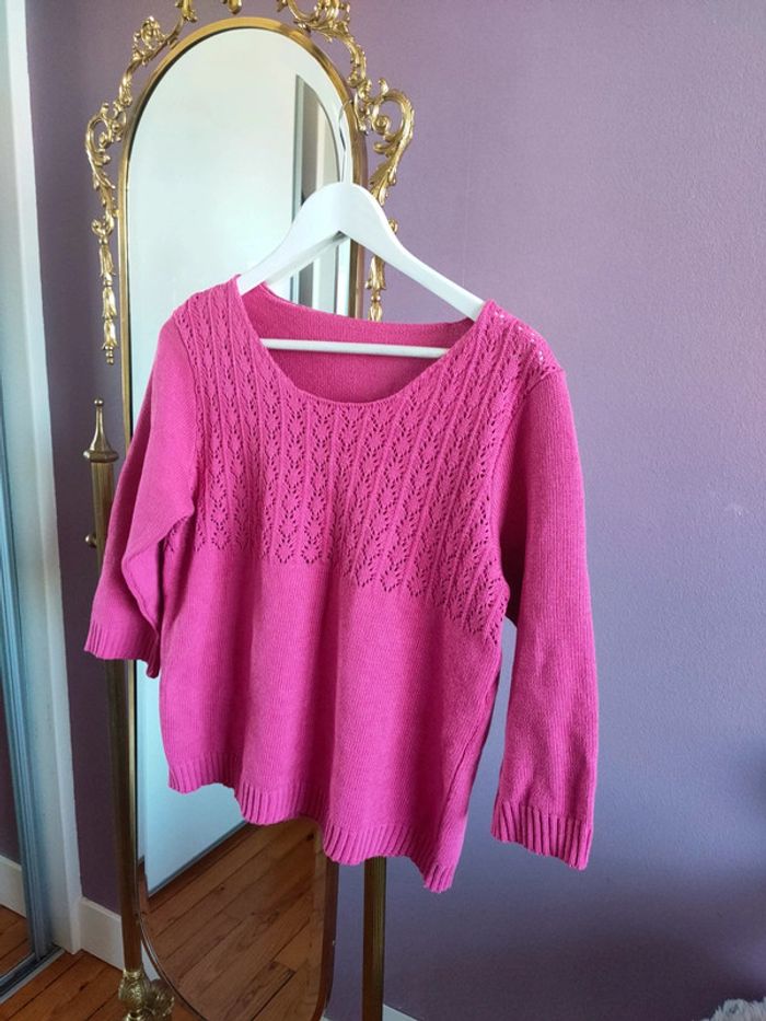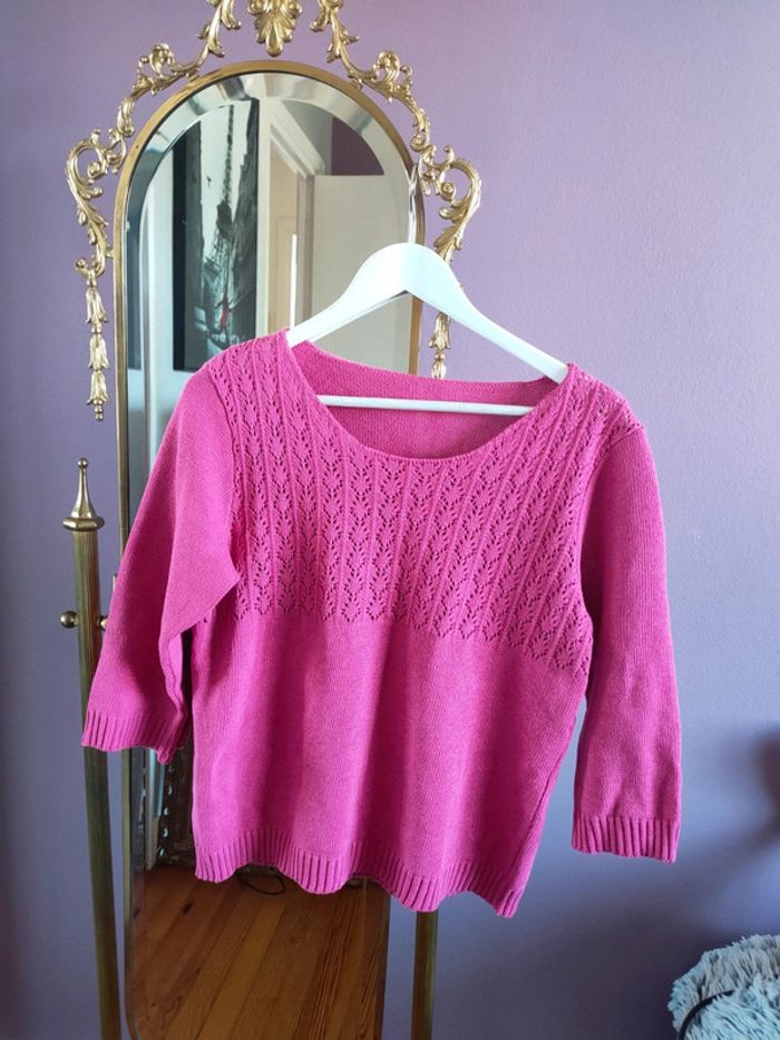 Magnfique pull rose vintage brodé 50% coton En parfait état Taille S-M