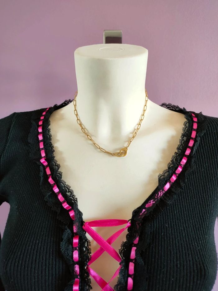 Magnifique pull corset avec laçage rose au milieu, et au niveau des manches Y2k Réglabe En parfait état Taille S-M