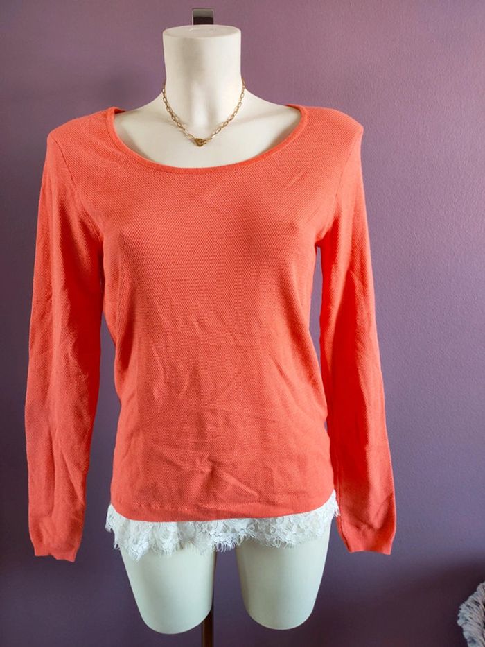 Magnfique pull orange corail brodé blanc Phildar Neuf, jamais porté Taille S