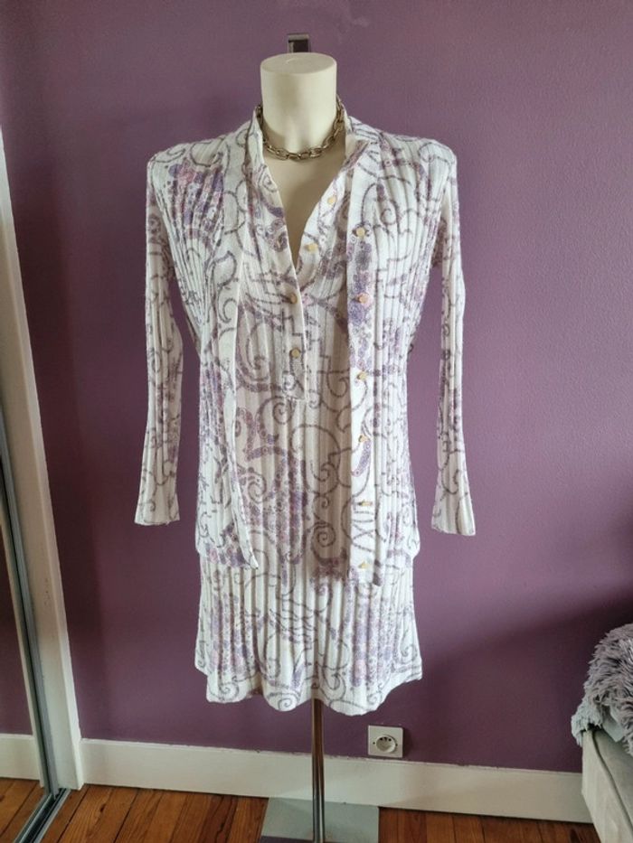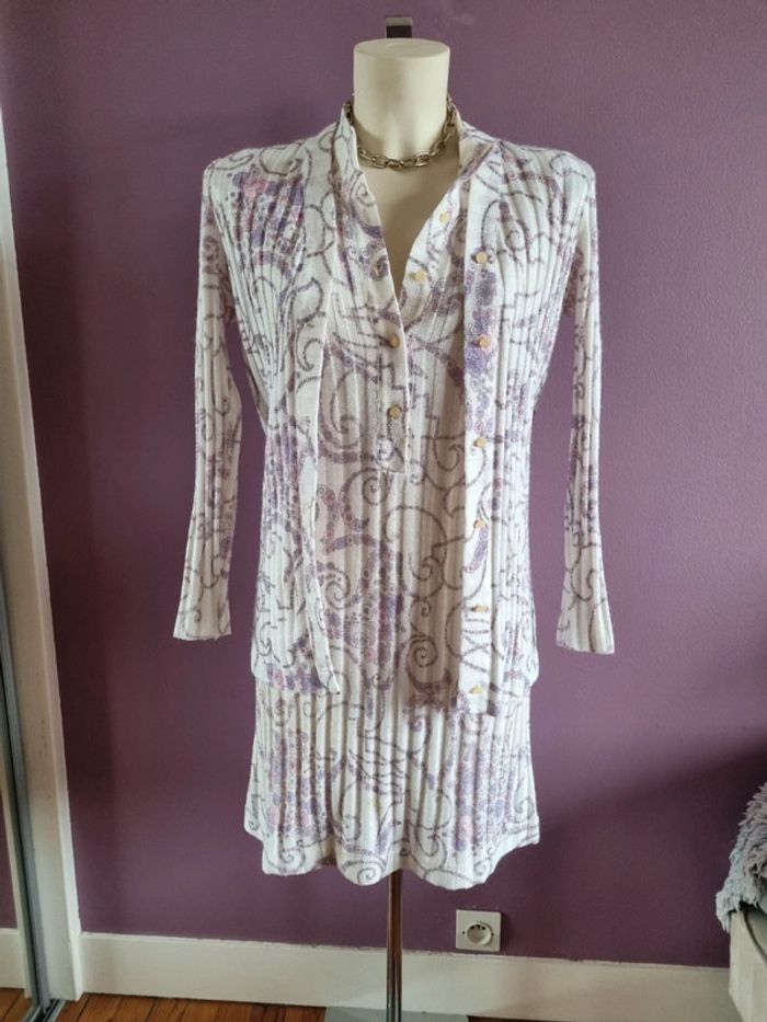 Magnifique ensemble robe et cardigan en maille vintage - photo numéro 1