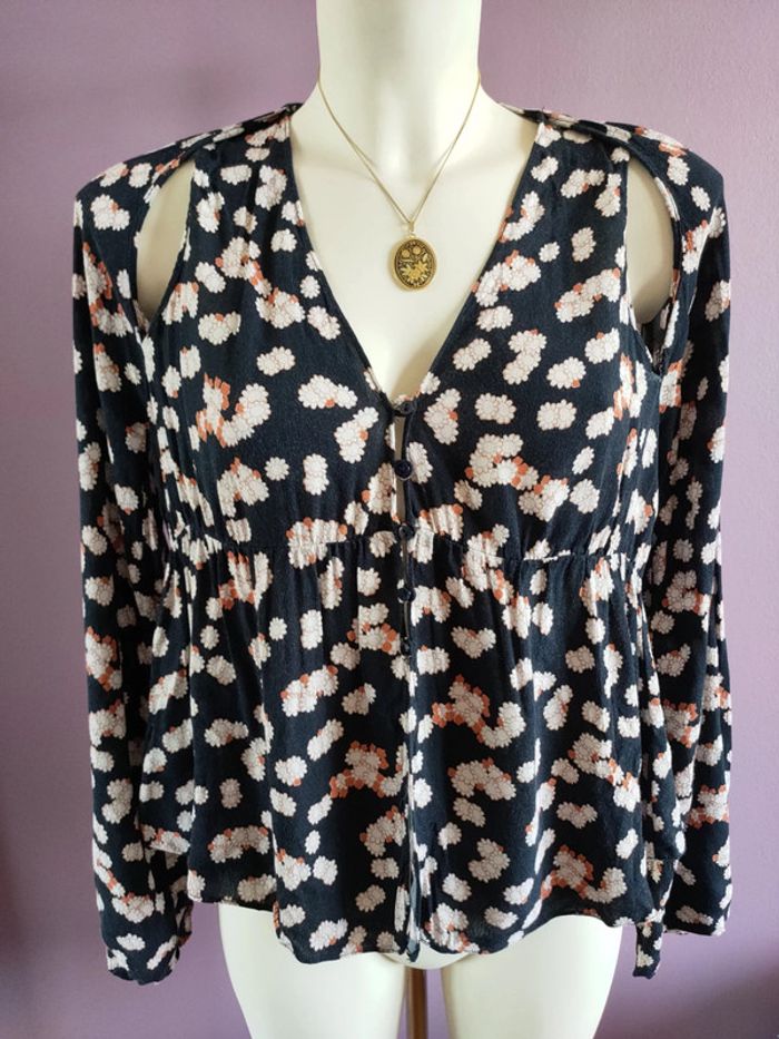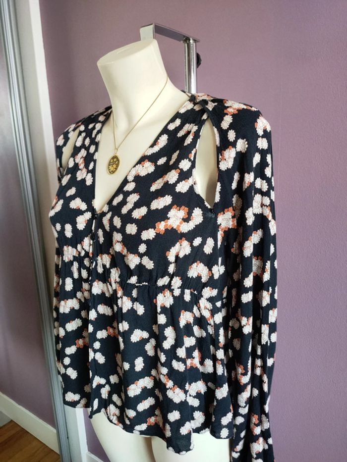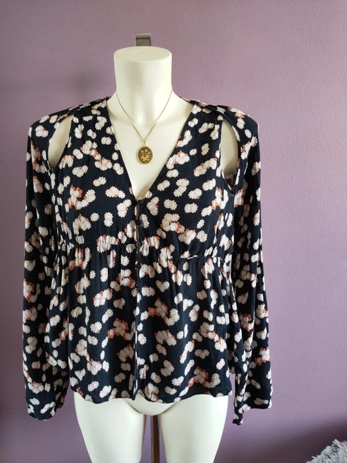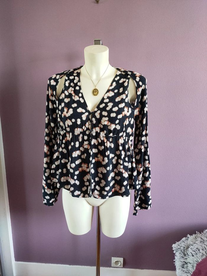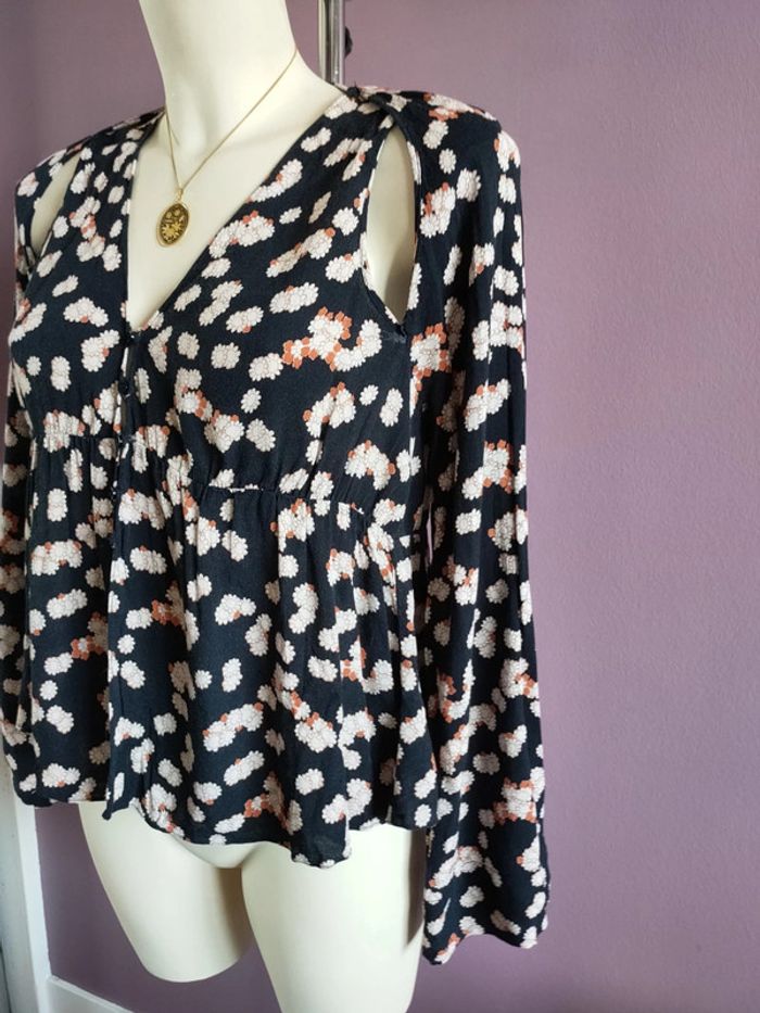 Magnifique chemise Zara fleurie crop top En parfait état Taille S Ouverture au niveau des épaules et du ventre Manche bouffante Jolie tombé