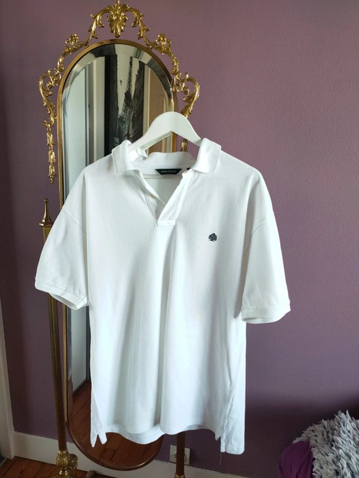 Magnifique polo blanc et noir de la marque Springfield 100% coton Taille : XL Dimensions : - Largeur épaules : 58 cm - Longueur dos : 77 cm - Largeur taille : 58cm