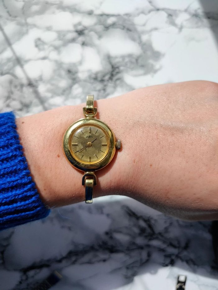 Magnfique montre vintage doré Cadran rond Marque : Maty Typiquement vintage année 60' Etat satisfaisant Vendu sans pile