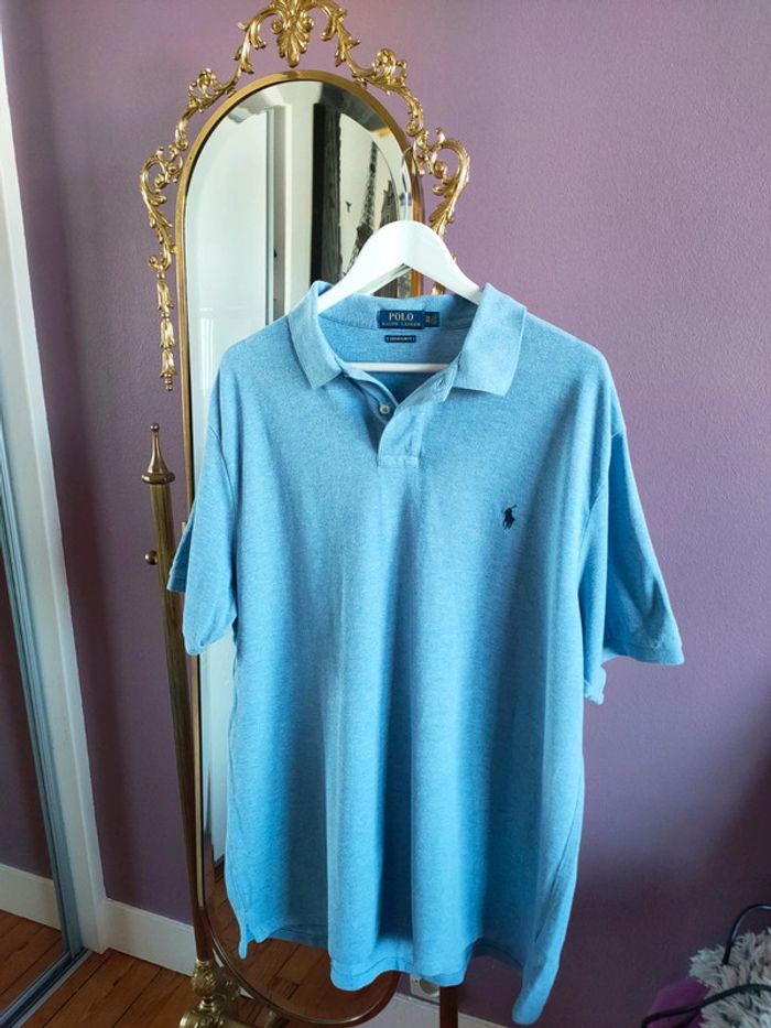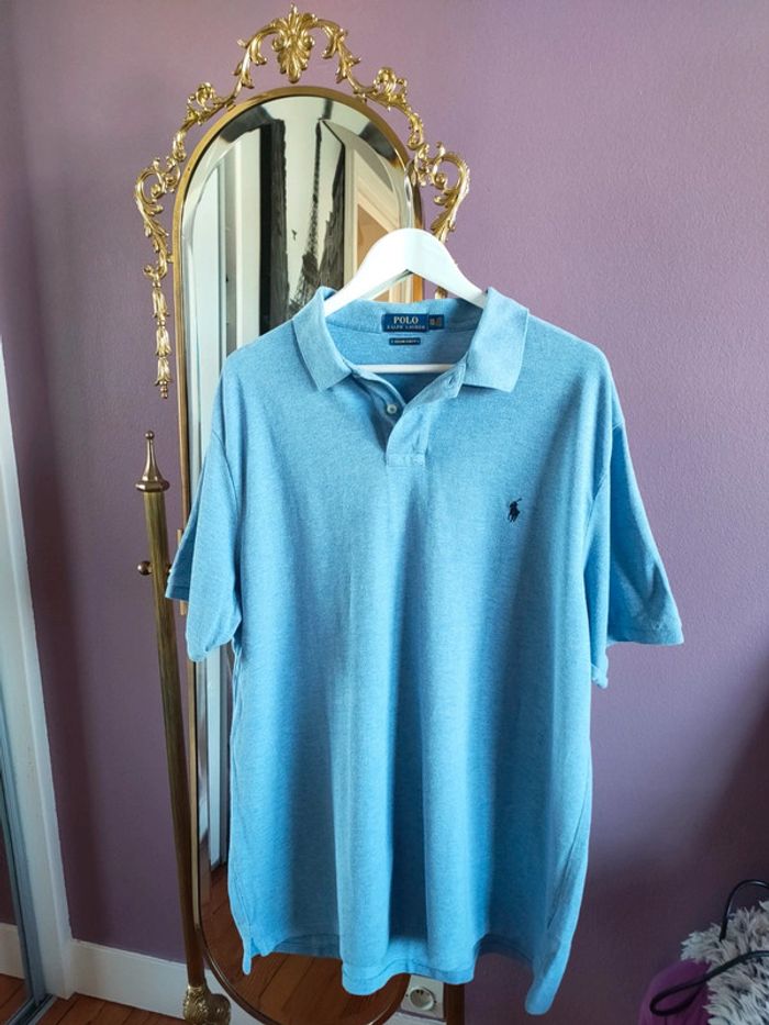 Magnifique polo Ralph Lauren Bleu moyen En parfait état Taille : XXL Dimensions : - Largeur épaules : 54 cm - Longueur dos : 77 cm - Largeur taille : 66 cm