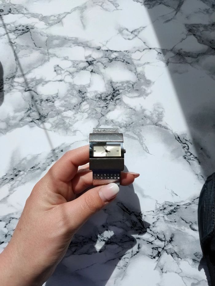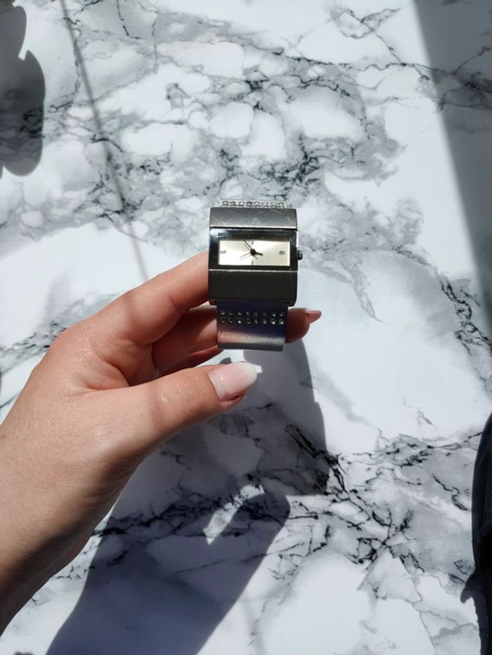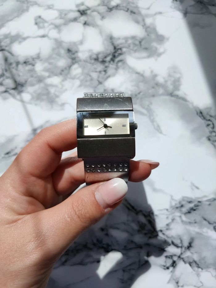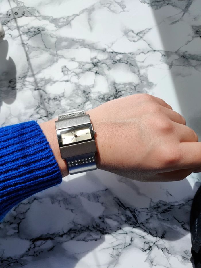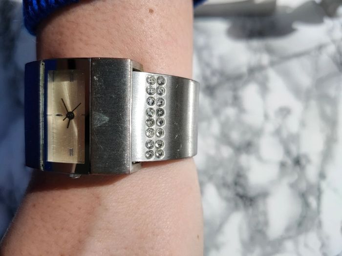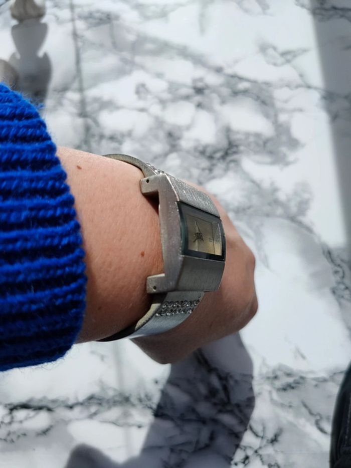 Magnfique montre vintage en métal brossé En bon état Vendu sans pile