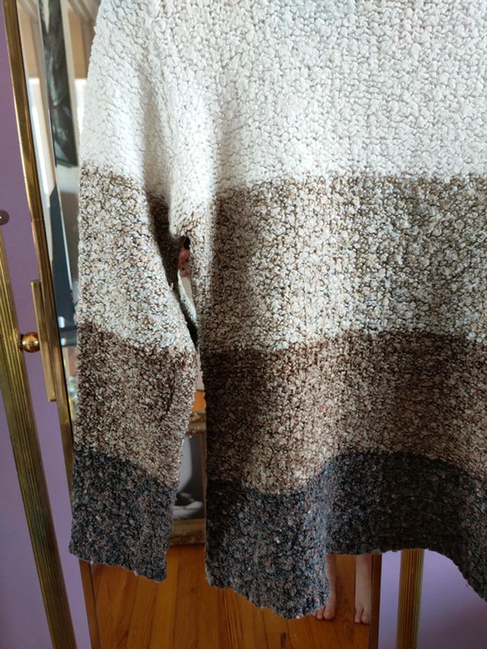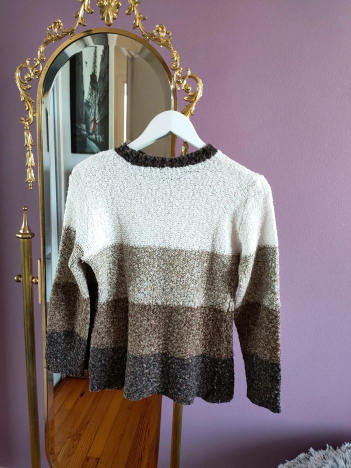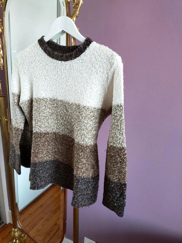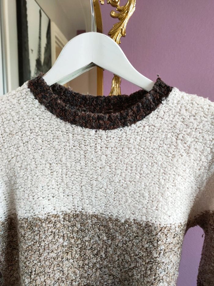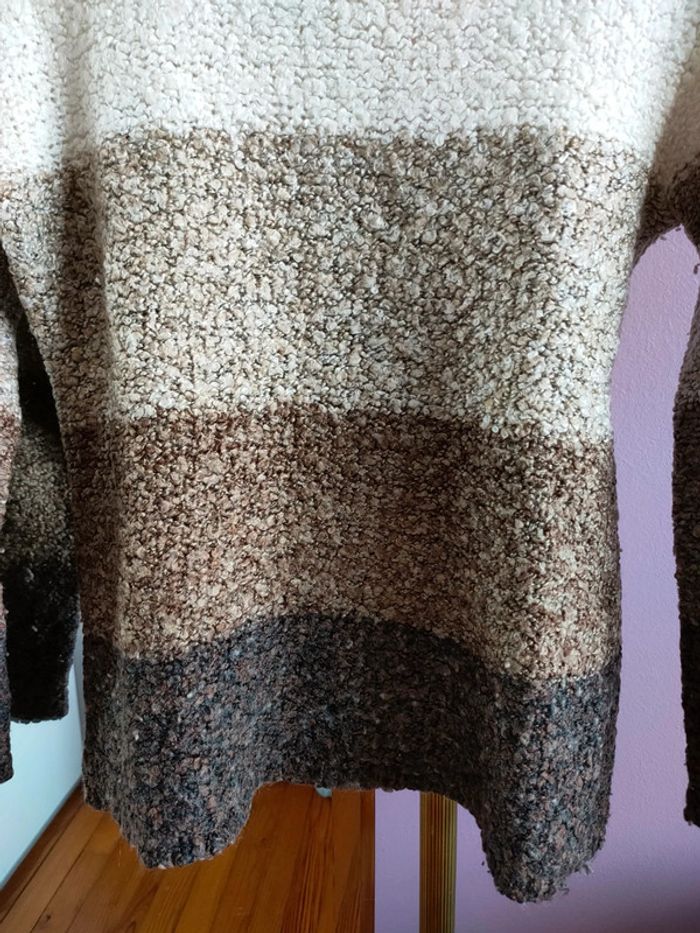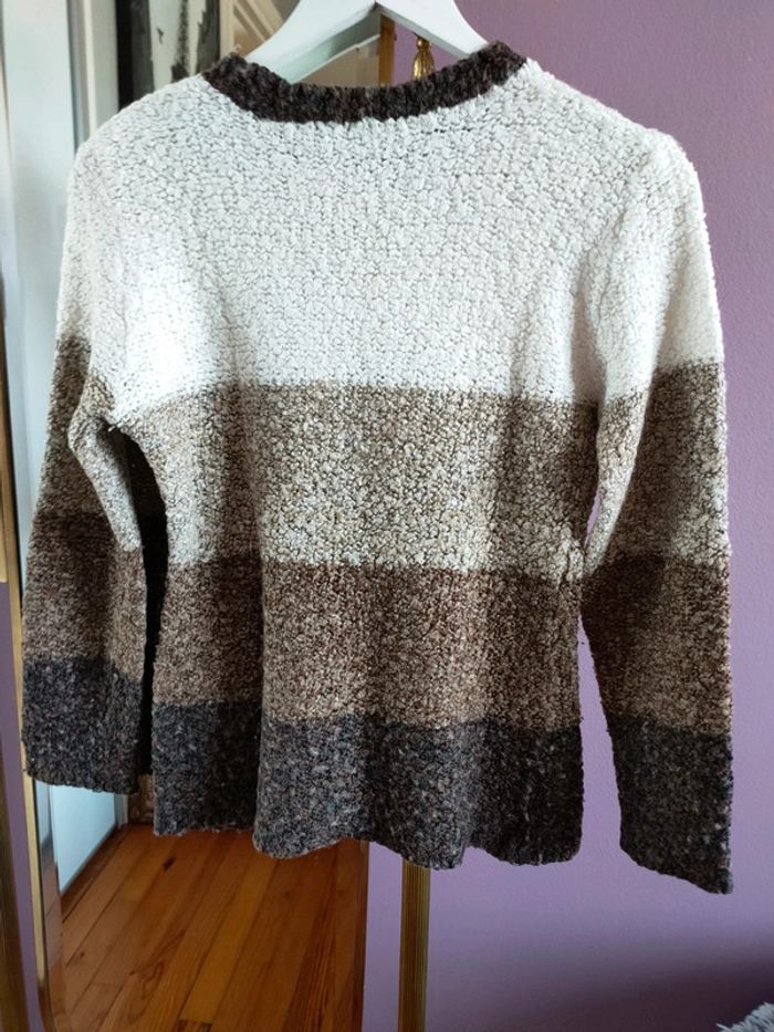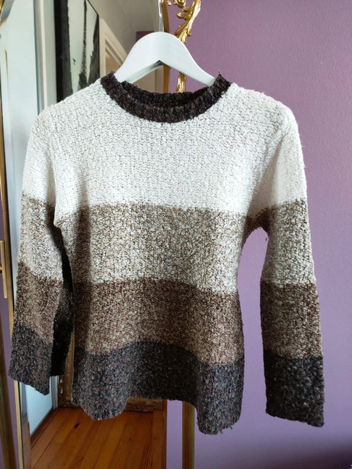 Magnfique pull en laine dans les tons chaud Marron, blanc, gris, beige En parfait état Taille unique : S,M,L Tout doux