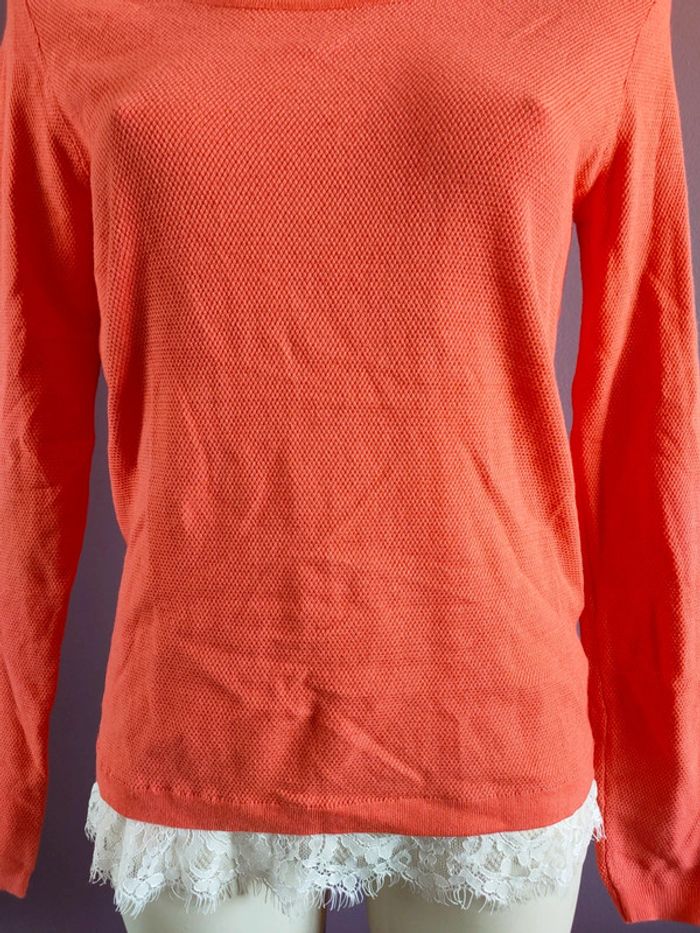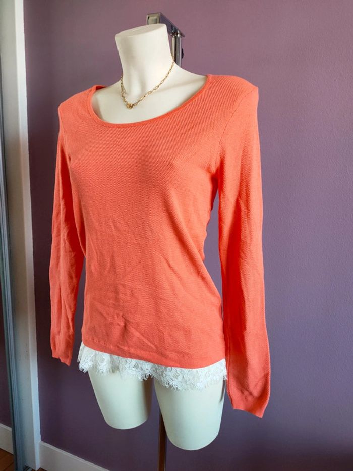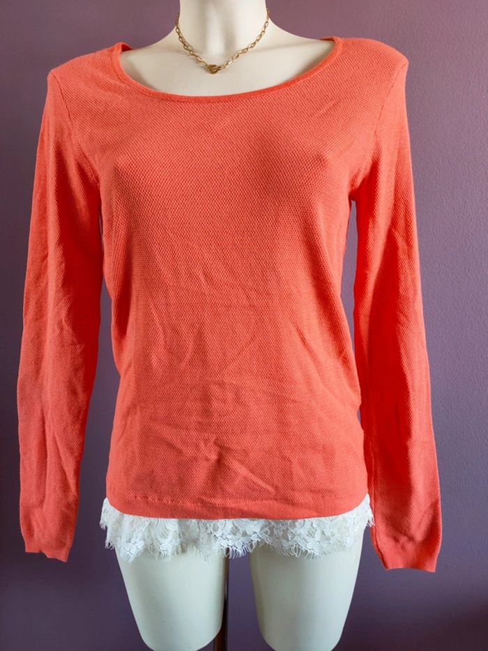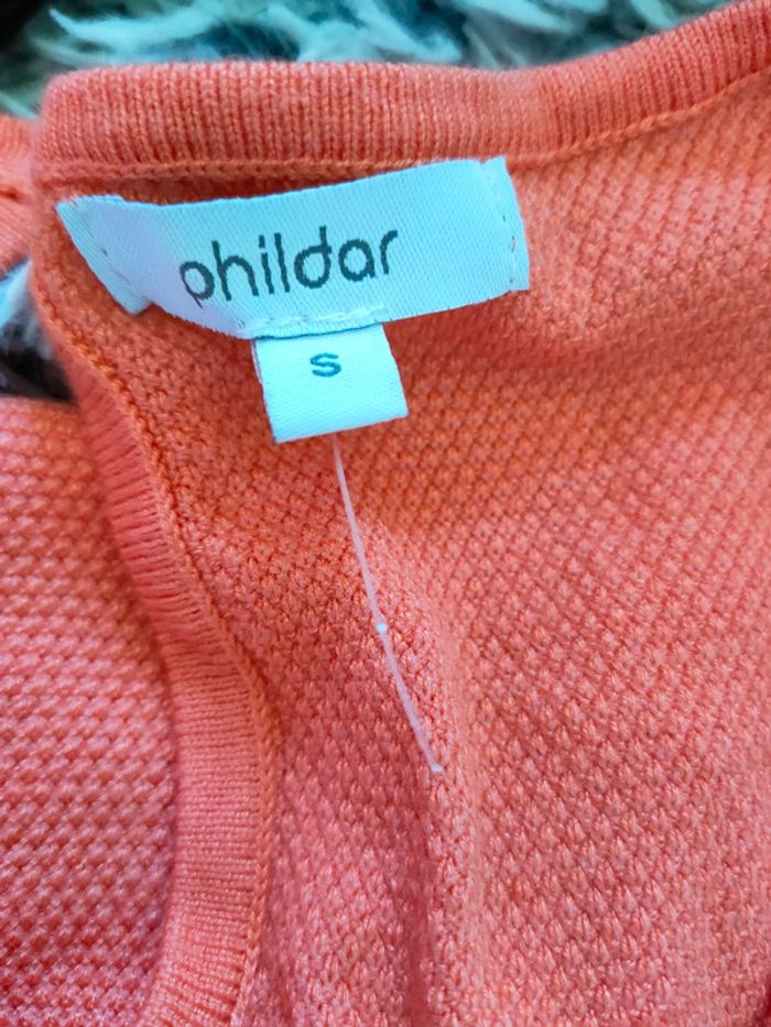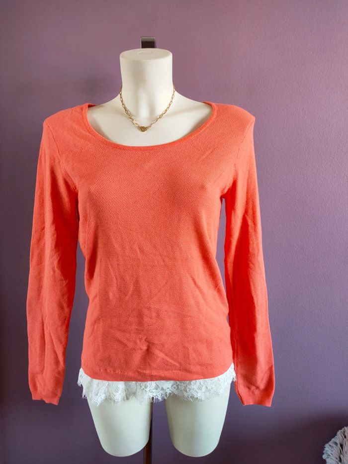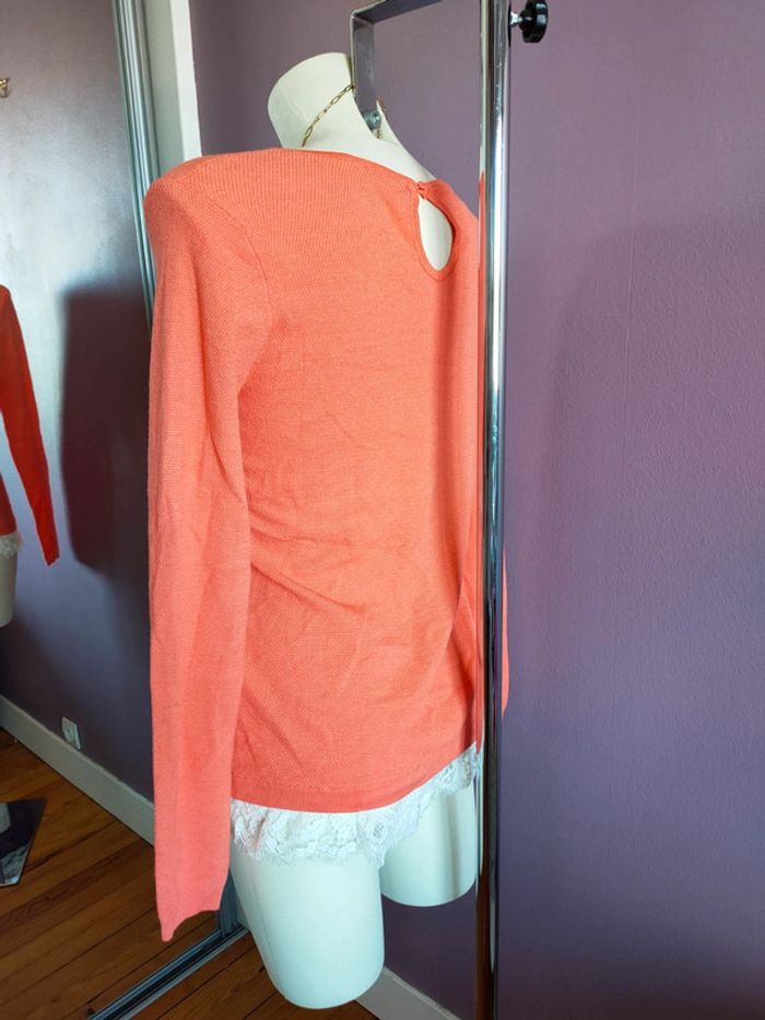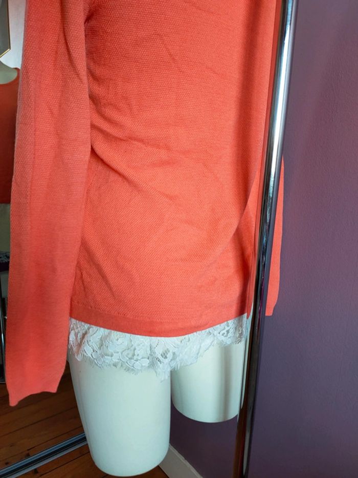 Magnfique pull orange corail brodé blanc Phildar Neuf, jamais porté Taille S
