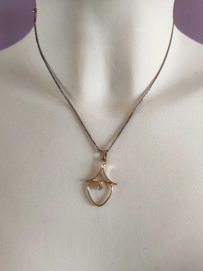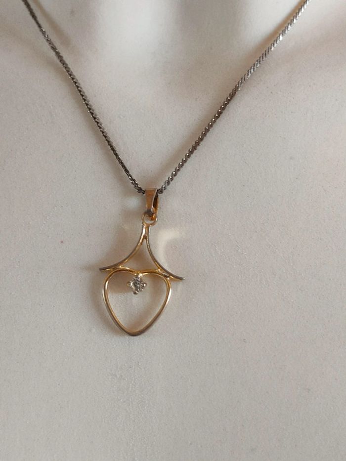 Collier argent et doré coeur