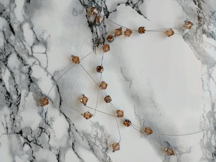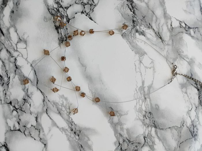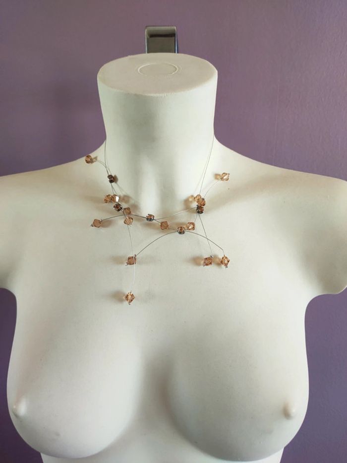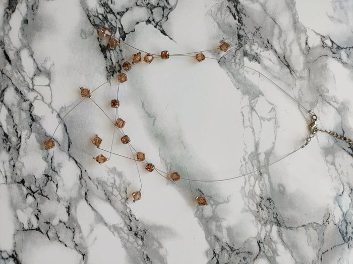 Magnifique collier en perles vintage En parfait état Idéal pour parfaire un décolleté Perles transparentes marrons en losange Perles en métal carrés Fil en métal Année 70' - Longueur fermé : 25 cm - Largeur des perles : 1 cm
