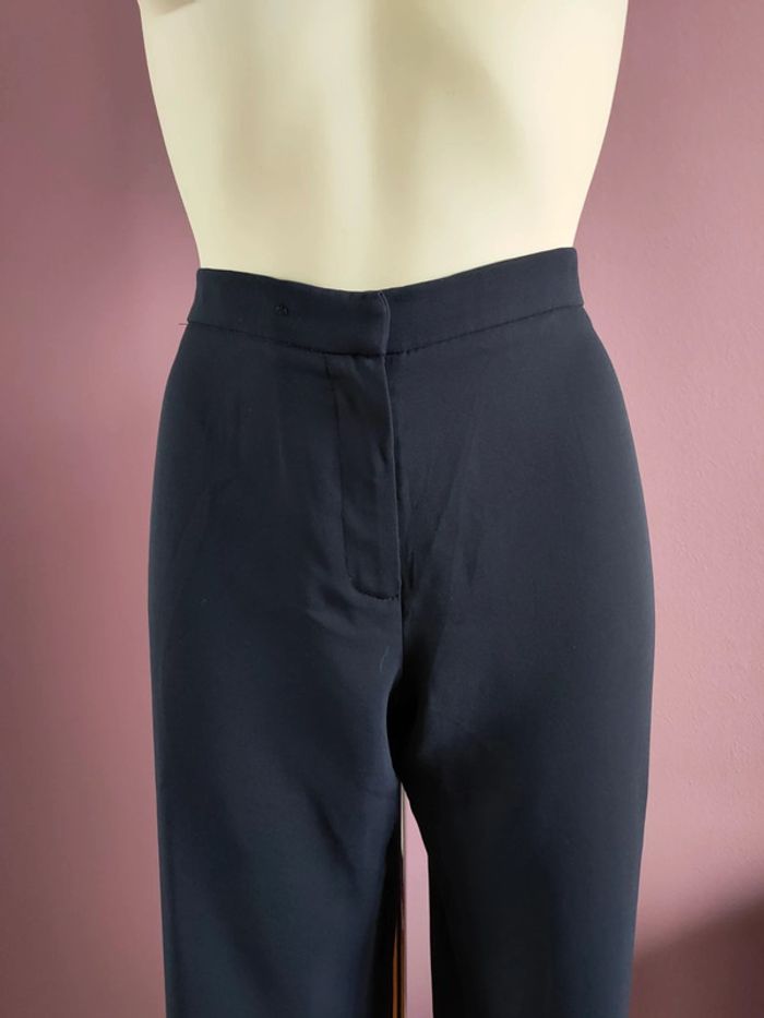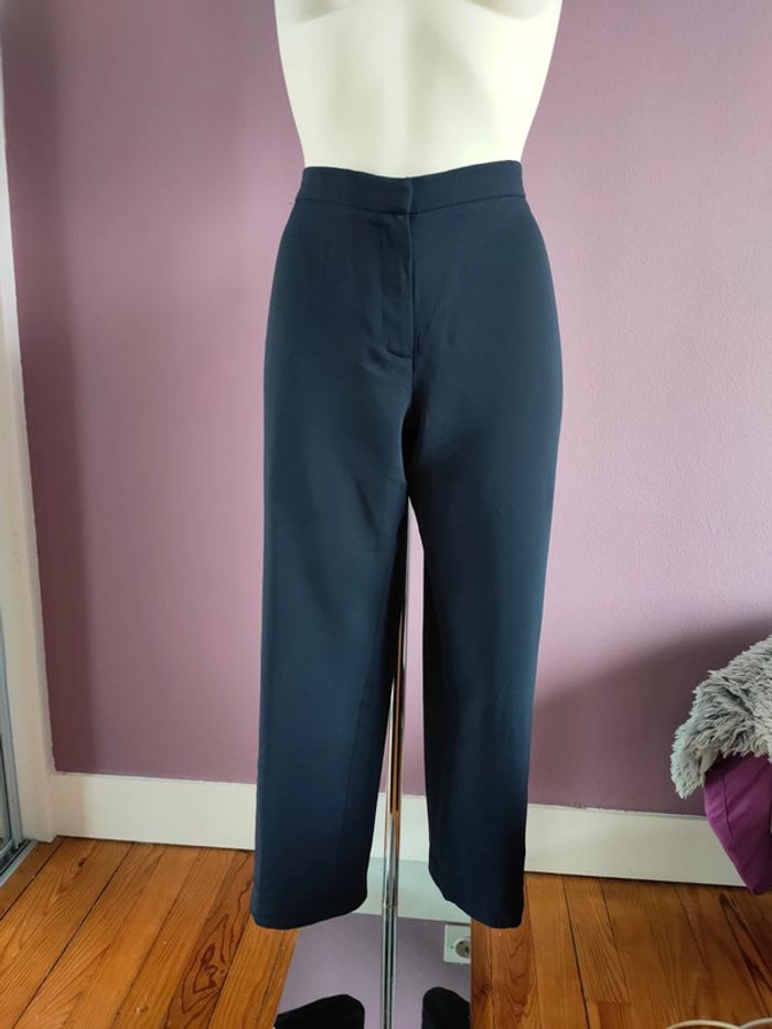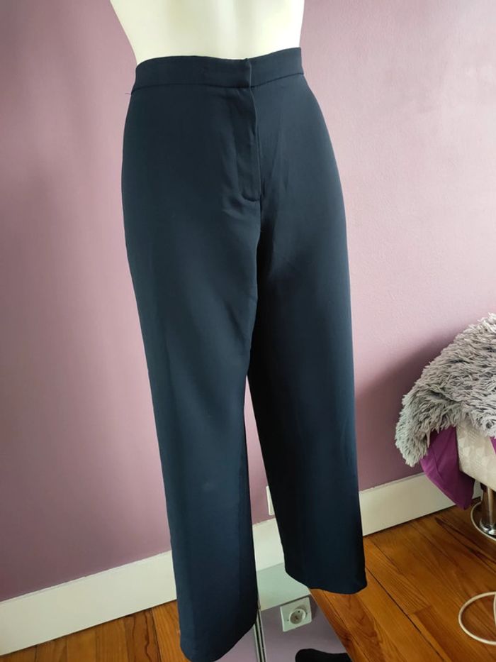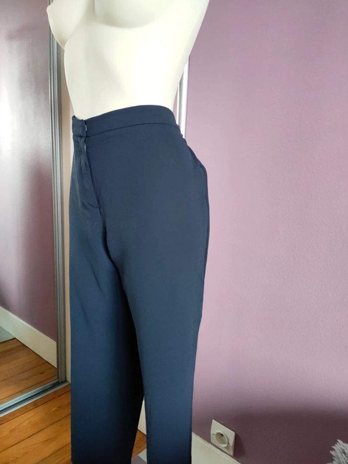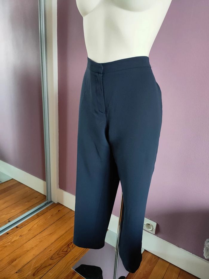 Magnifique pantalon chic. C'est un pantalon à pince de couleurs bleu marine En parfait état Largeur : 41cm Longueur : 95 cm