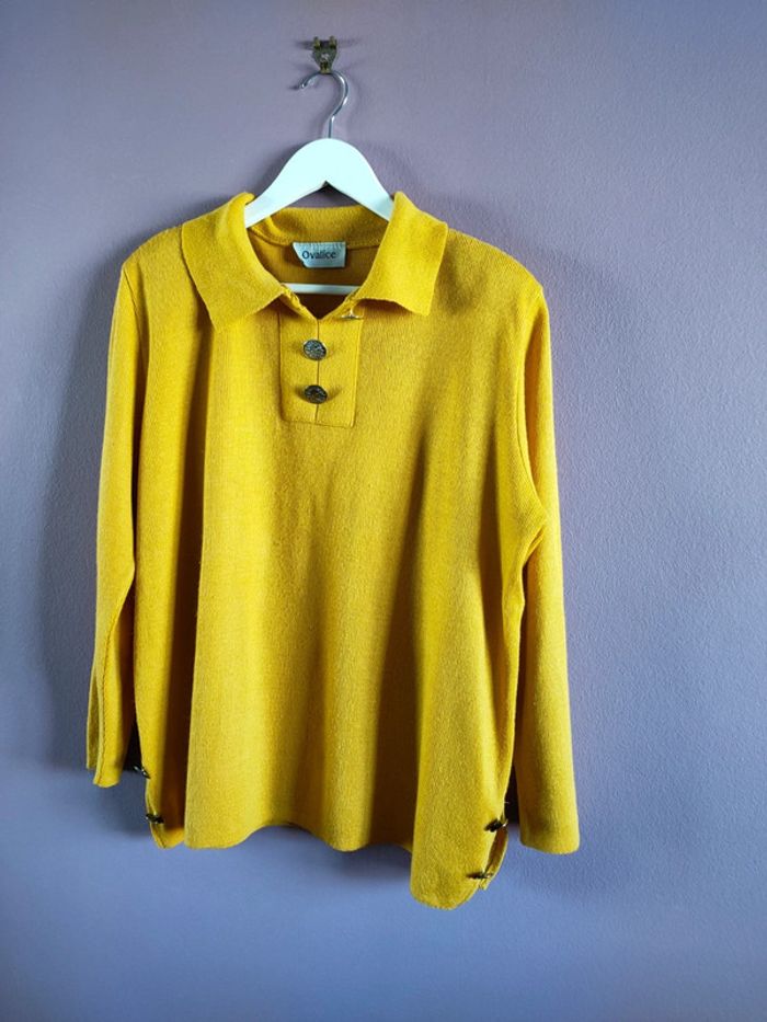 Magnifique pull jaune vintage Bouton argenté esprit 💯% vintage En parfait état Taille L