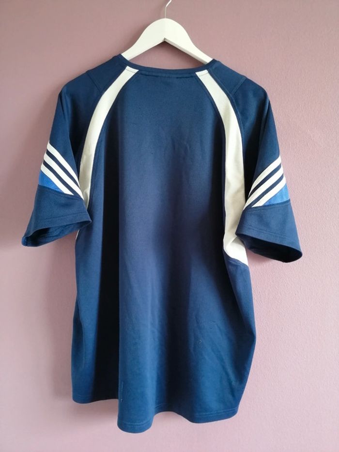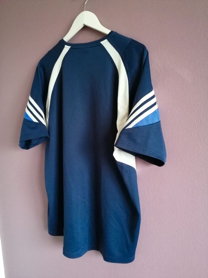 Tee shirt Adidas bleu Matière : polyester Couleur : bleu foncé, bleu médium, blanc Taille : XL En parfait état #ngteeshirthommes