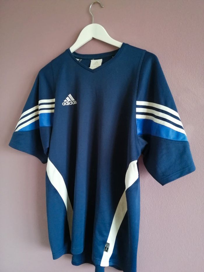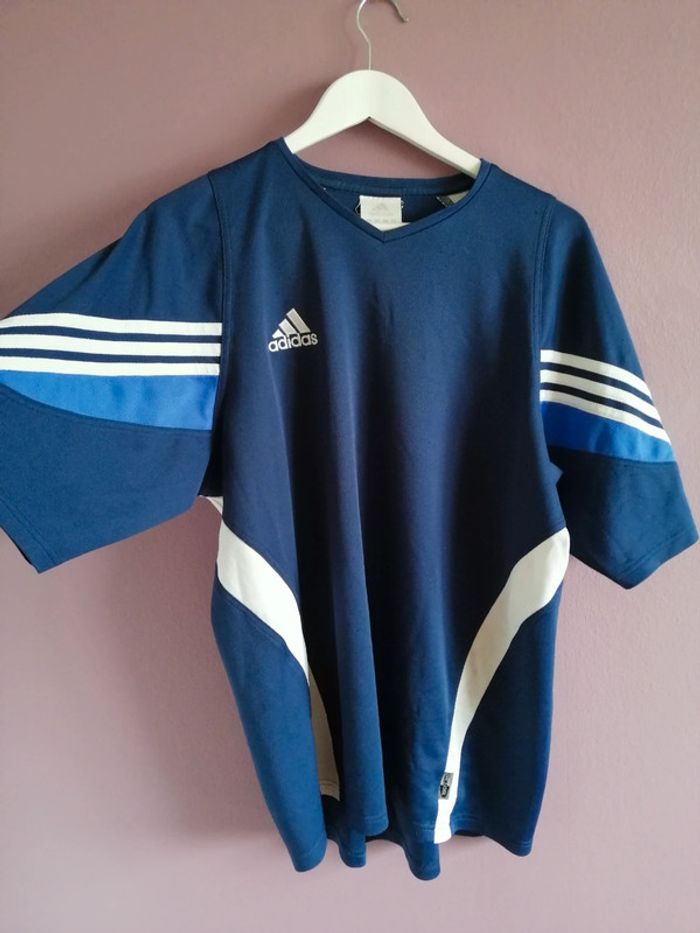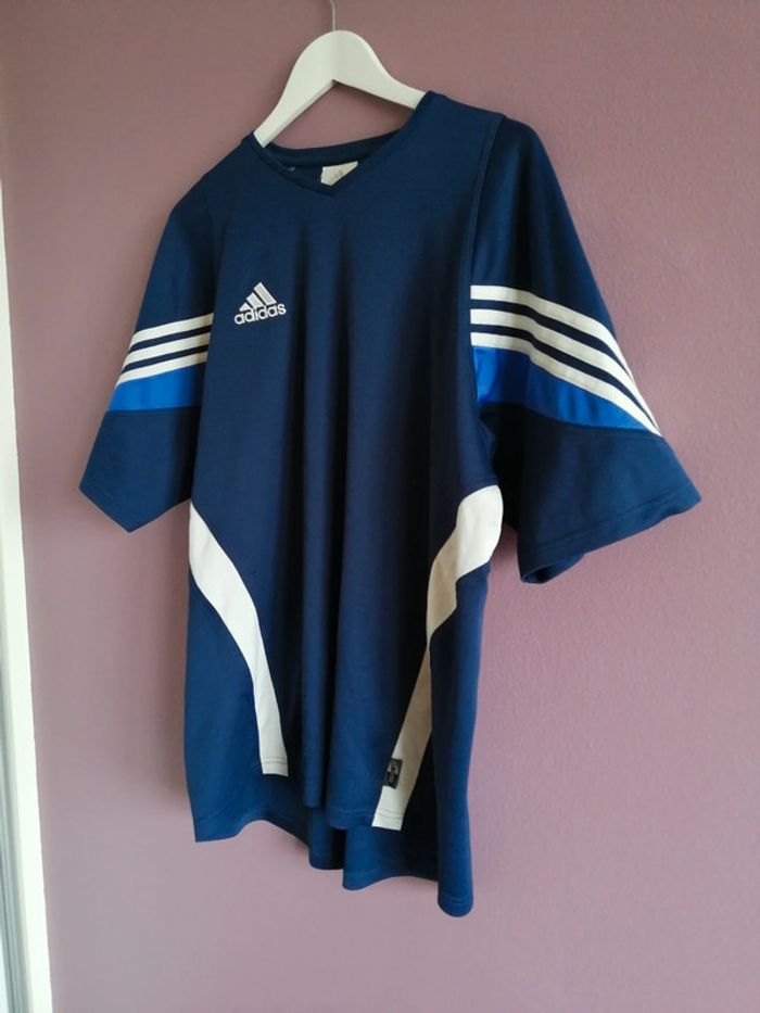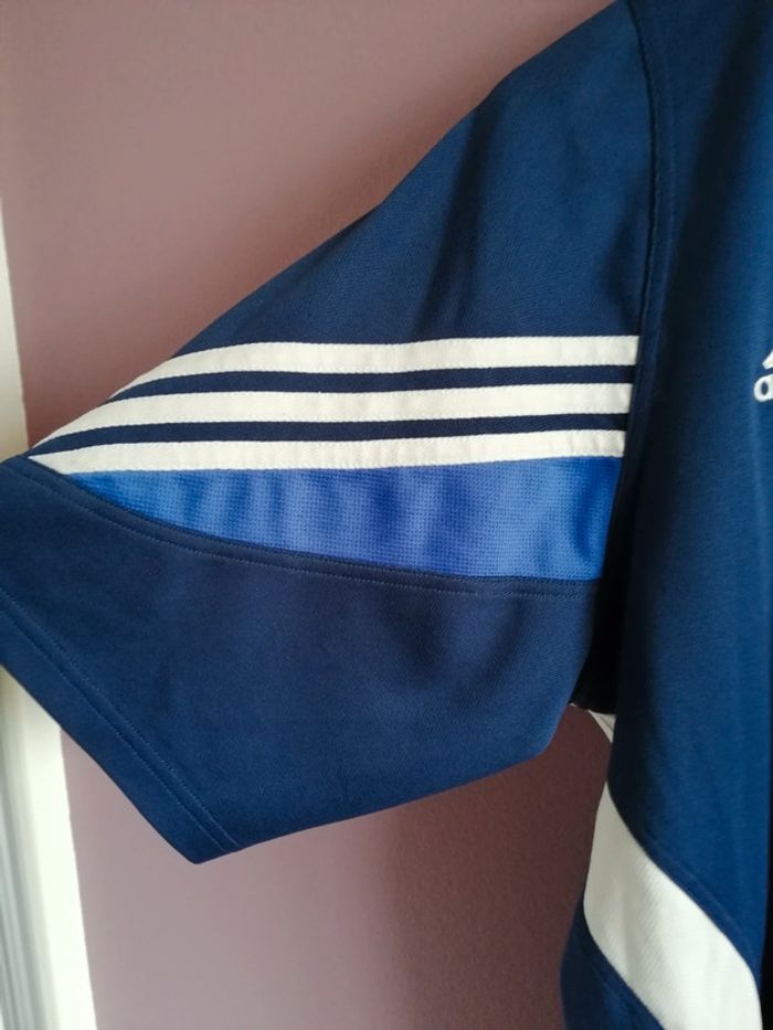 Tee shirt Adidas bleu Matière : polyester Couleur : bleu foncé, bleu médium, blanc Taille : XL En parfait état #ngteeshirthommes