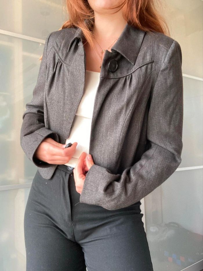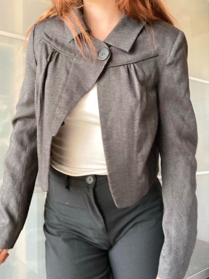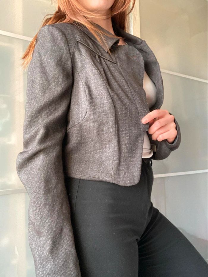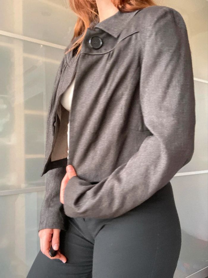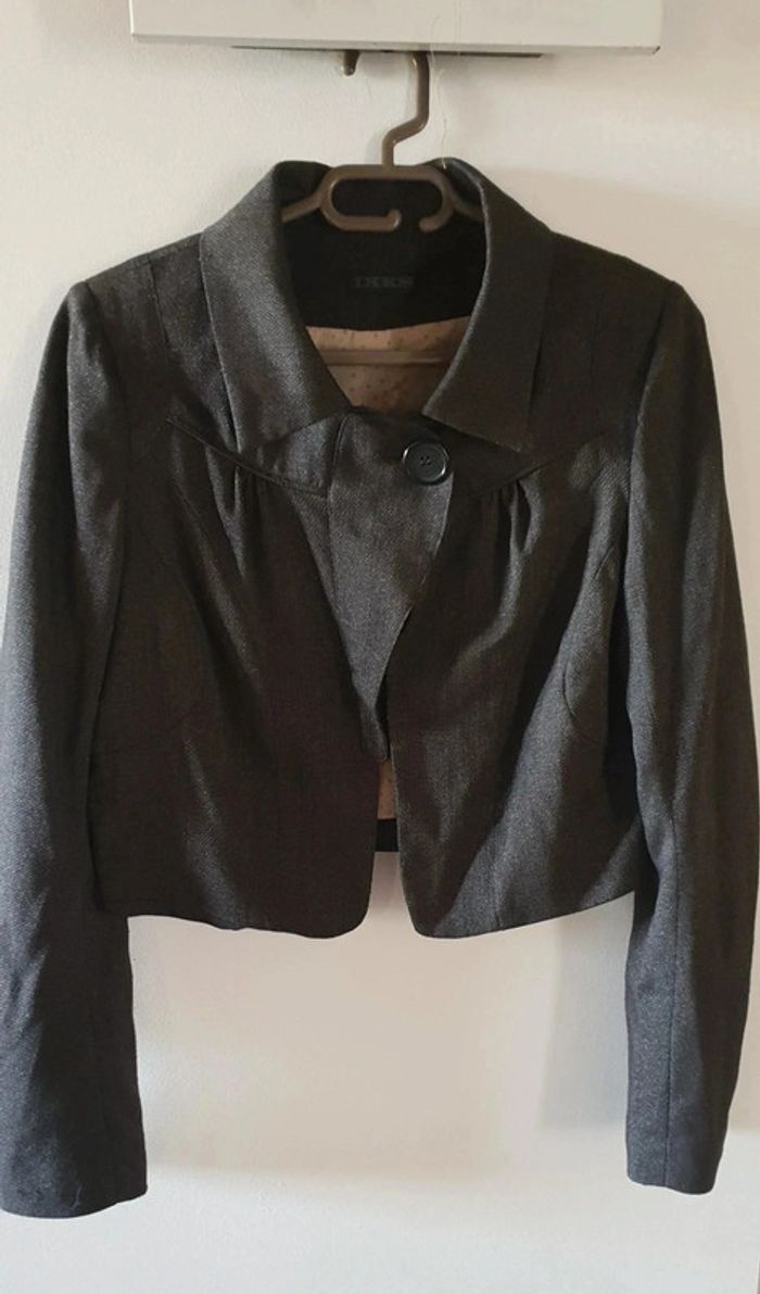 Veste courte style boléro Ikks 38 Marron anthracite avec fond brillant #femmeM_mondressing11_bv Boite P