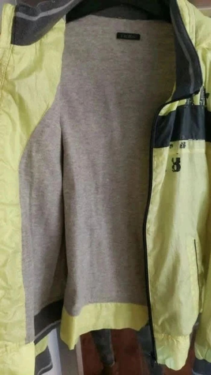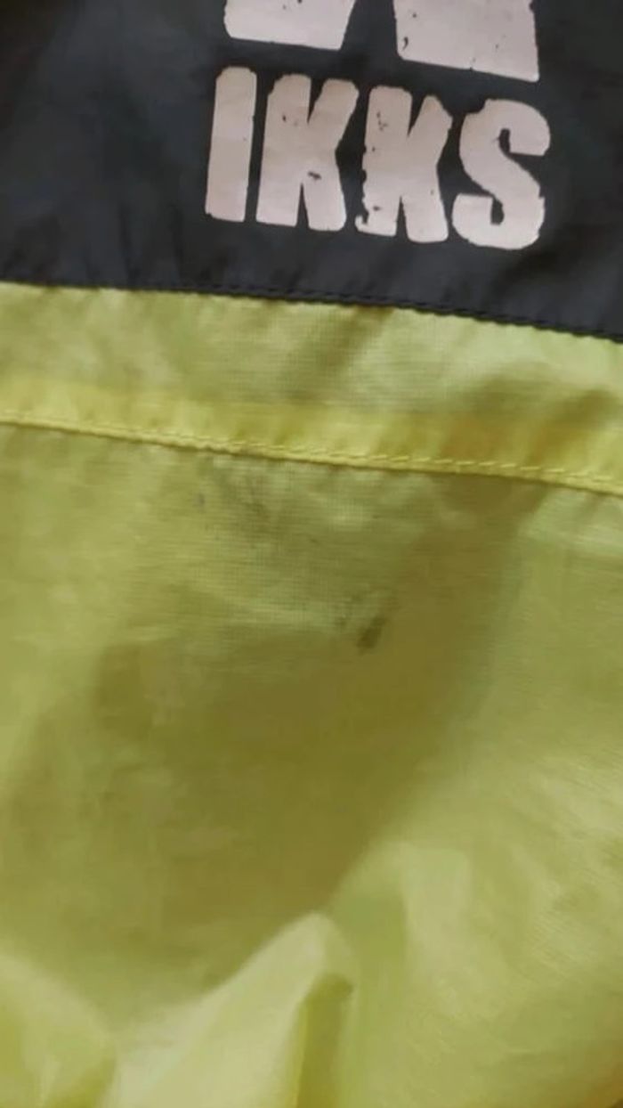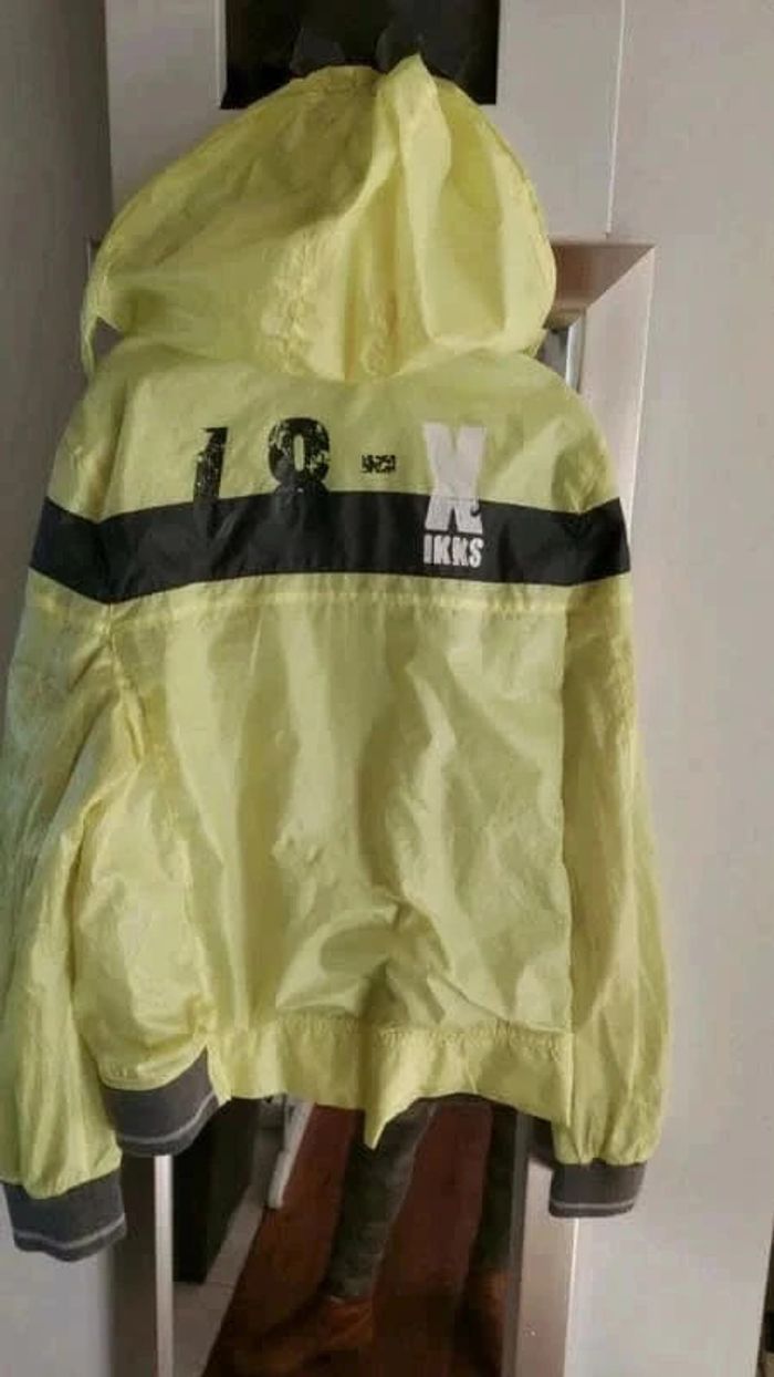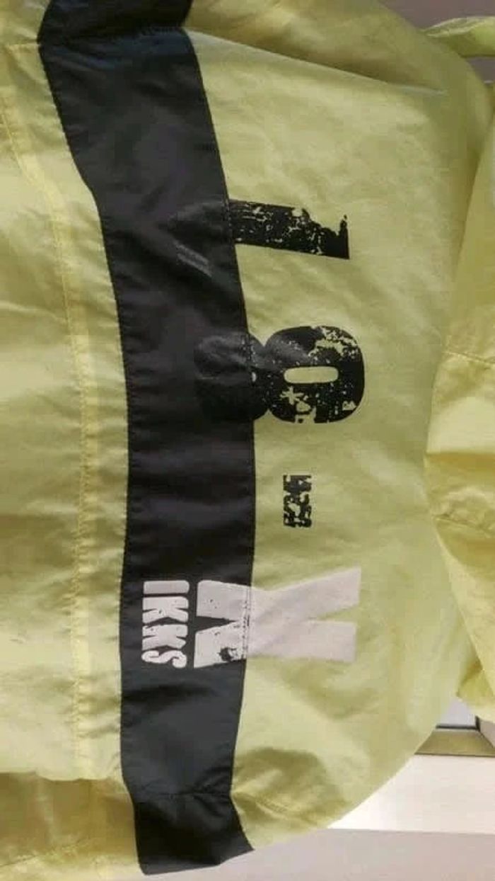 Coupe vent double ikks jaune fluo, phocage abîmé, taille 10a Capuche amovible dans le col, capuche déchire sur un cote 2 petites taches, une devant une derrière #garcon10ans_mondressing11_bv